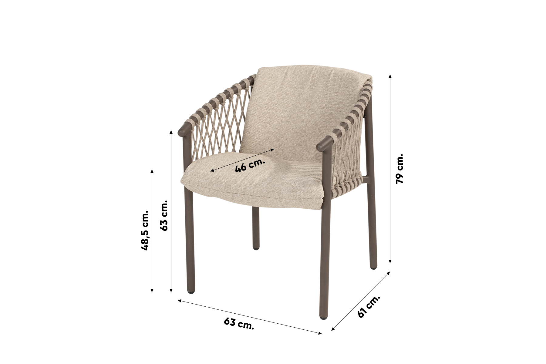 Rope (touw) is een prachtig zacht materiaal met een hippe uitstraling en weerbestendige eigenschappen. Het materiaal vergt weinig onderhoud, mocht je het rope schoon willen maken dan adviseren wij om de Wicker en textileen cleaner van 4-Seasons te gebruiken.