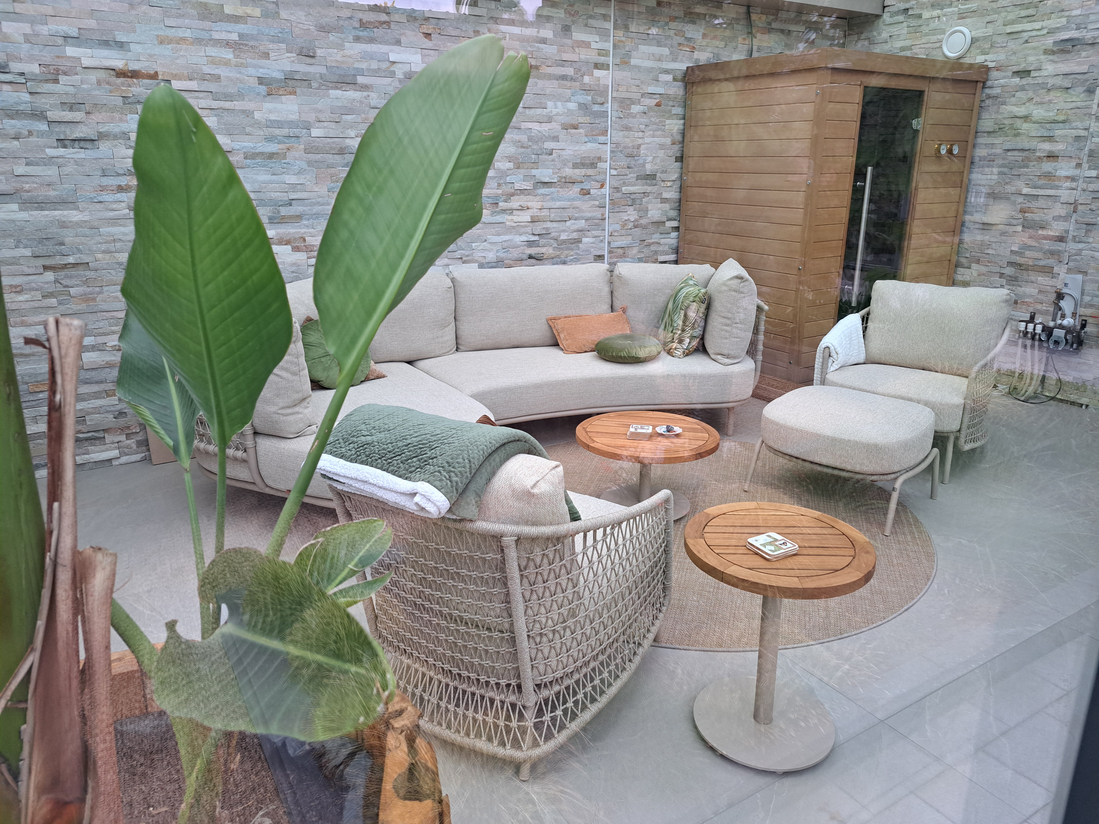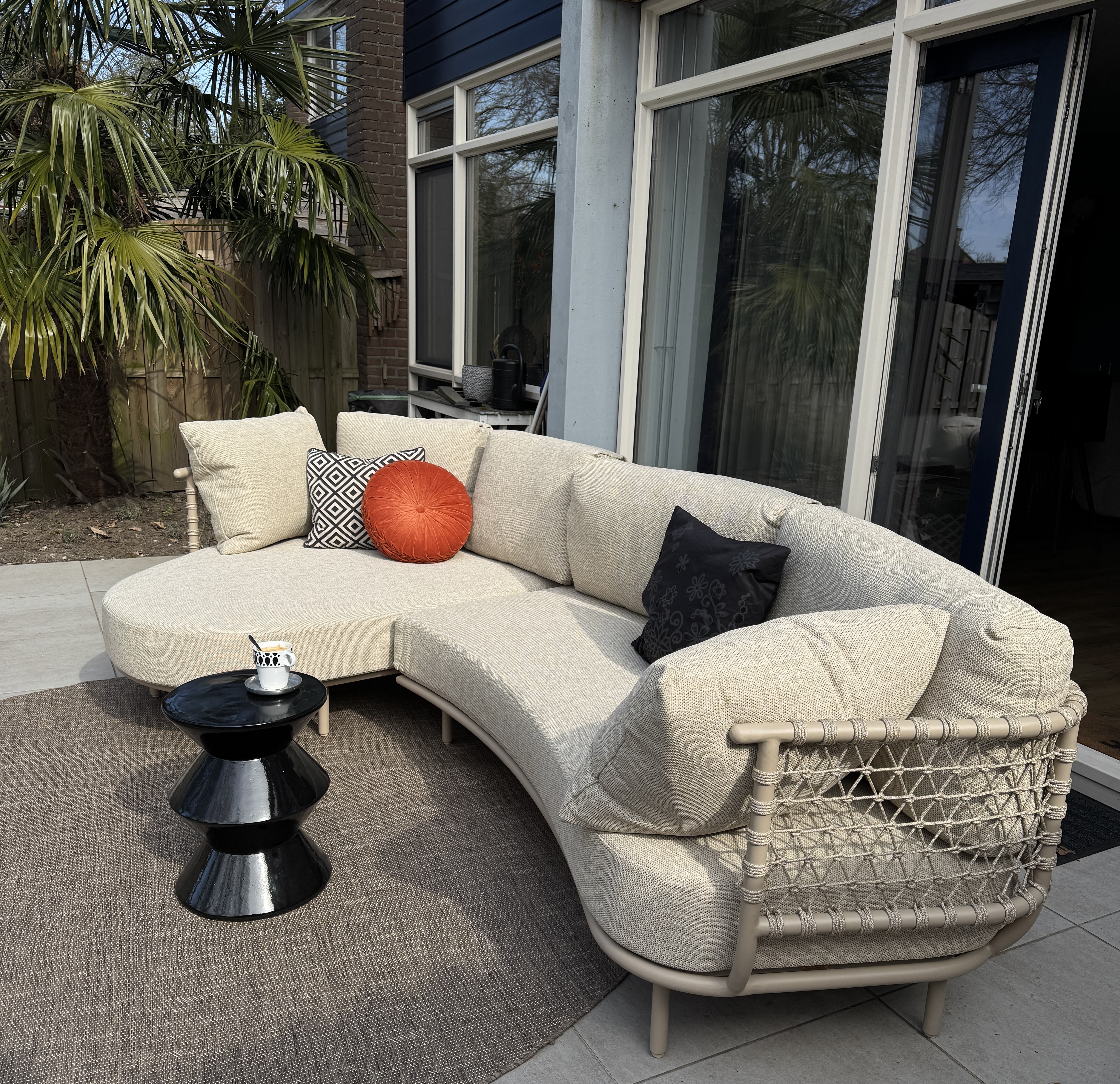 Wil jij een échte trendy eyecatcher in jouw tuin hebben staan? Bestel dan zo snel mogelijk de 4 Seasons Sardinia hoekbank. Deze hoekbank heeft geen echte hoek, maar juist een ronde vorm. Een unieke verschijning die prachtige staat in een moderne tuin. Deze taupe kleur die 'latte' wordt genoemd geeft een rustige uitstraling. Met de royaal gevulde zitkussens ben je verzekerd van een comfortabele zit. Doordat er aan één kant een chaise longue staat kan je lekker met de voeten omhoog je boekje lezen. Wees er dus op tijd bij en bestel direct online! Liever eerst even proefzitten? Kom dan langs in onze showroom in Opheusden, Duiven of Apeldoorn. Je bent van harte welkom!
