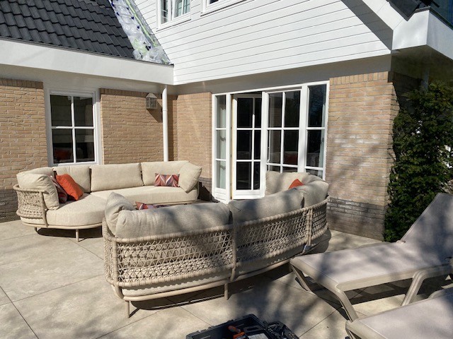 5 / 5Fantastische loungebankHelemaal van deze tijd! Mooie kussens, frame en rope. Je voelt dat het top kwaliteit is. De kussens kan je buiten laten in de zomer maanden, ze zijn bestand tegen wat regen, om ze langer mooi te houden doe ik dat liever niet. Makkelijk in elkaar te zetten, je hoeft alleen de pootjes erop te schroeven. Verder zit bank erg comfortabel en is ruim genoeg voor 3 mensen.0 lezer(s) vonden deze review behulpzaamVind je deze review behulpzaam?
