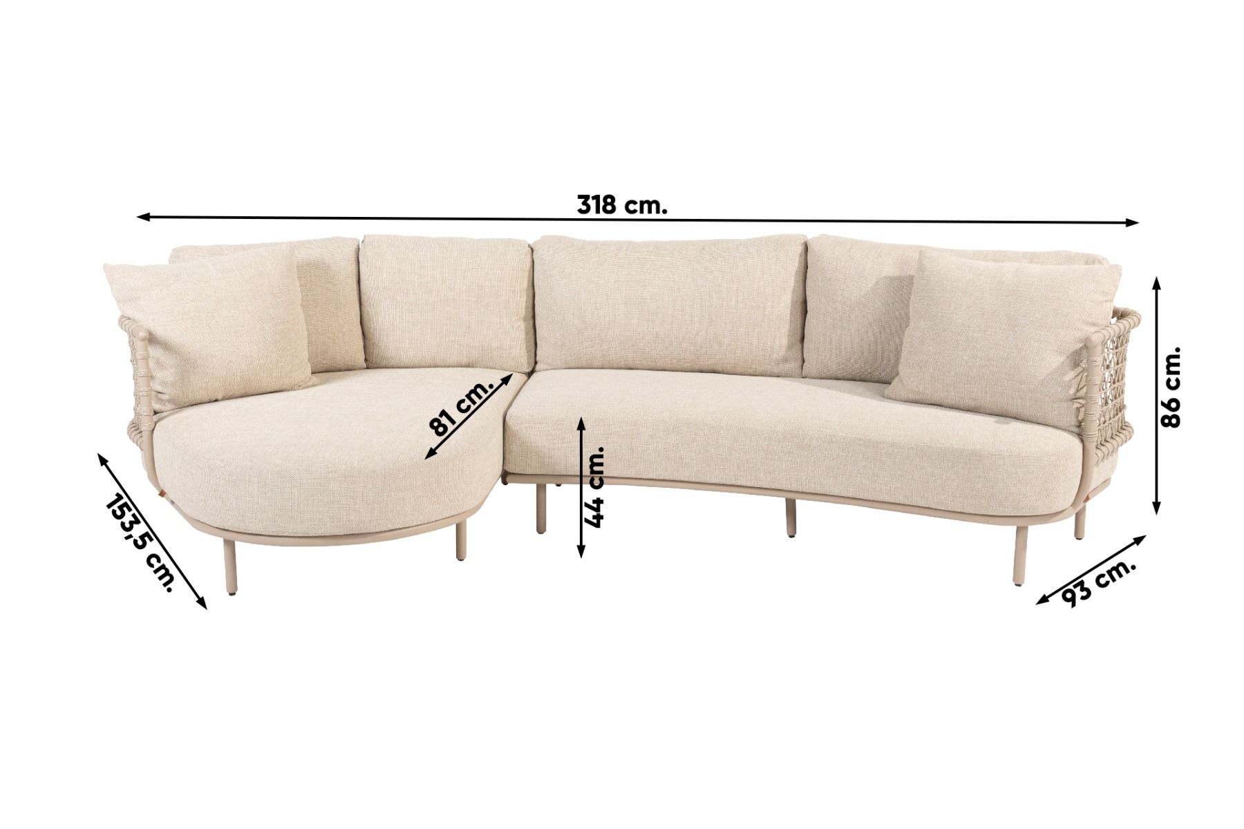De Sardinia van 4 Seasons Outdoor is gemaakt van aluminium en rope. Aluminium heeft de positieve eigenschap dat het licht van gewicht is, niet gaat roesten en lang mee gaat. Het aluminium heeft een poedercoating in de kleur 'latte' gekregen. Dit geeft bescherming aan het frame én de mooie taupe kleur van deze bank. De bank heeft een prachtig geweven motief van rope rondom de bank heen. Dit rope is weersbestendig en van hoge kwaliteit. De meegeleverde kussens zijn gemaakt van Olefin en sneldrogend schuim. Dit zorgt ervoor dat deze loungebank gewoon tegen een buitje kan! Dat is pas onbezorgd genieten. We raden wel aan om de kussens droog op te bergen wanneer deze een tijdje niet gebruikt wordt. De Sardinia wordt geleverd exclusief bijzettafels. Deze zijn verkrijgbaar in de voordeelbundel welke je hierboven kunt vinden.