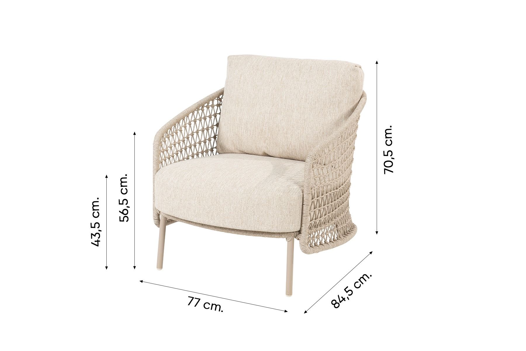 Rope (touw) is een prachtig zacht materiaal met een hippe uitstraling en weerbestendige eigenschappen. Het materiaal vergt weinig onderhoud, mocht je het rope schoon willen maken dan adviseren wij om de Wicker en textileen cleaner van 4-Seasons te gebruiken.