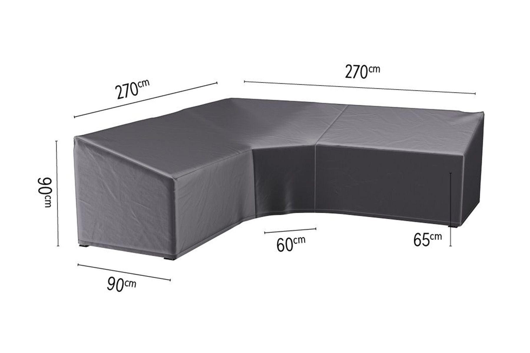 Op zoek naar een loungesethoes voor uw XL corner element? De 270x270 cm loungesethoes met trapeze vorm is hier voor geschikt. De loungesethoes is speciaal gemaakt voor loungesets die een XL corner hebben. Door de schuine hoek in de hoes past deze perfect over uw loungeset heen. De hoes heeft aan de achterkant een hoge rugleuning en aan de voorkant is deze lager. Dit zorgt ervoor dat het water mooi weg kan lopen en je geen waterzakken in de hoes krijgt.