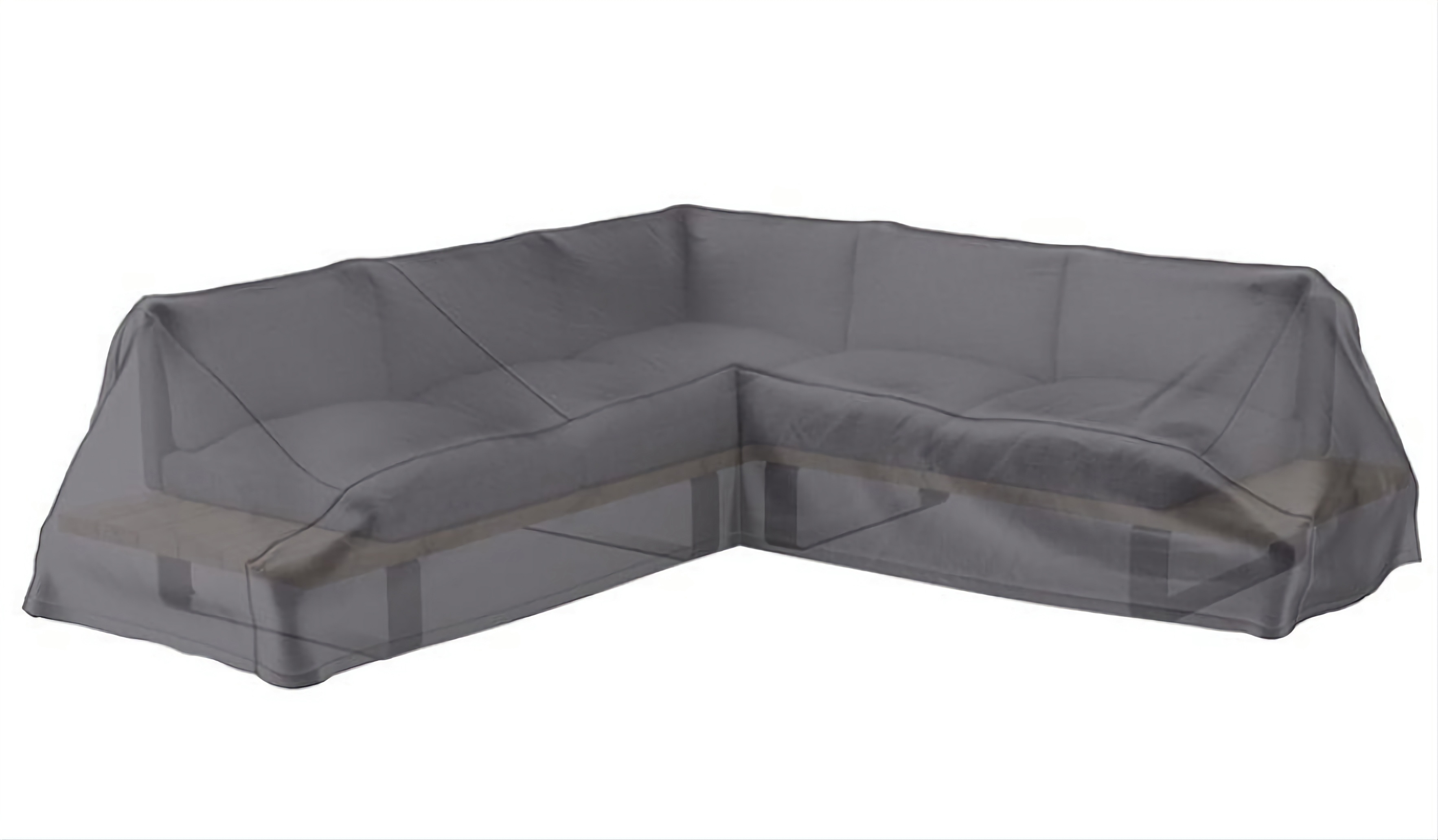 Bescherm uw loungeset optimaal met de platofrm loungesethoes van het bekende hoezen merk Aerocover. Het voordeel ten opzichte van een vierkante hoes is dat er in een l vormige hoes geen waterzakken kunnen ontstaan en de hoes dus ook niet door kan gaan lekken. Het materiaal van de hoes is ripstop polyester, dit is erg soepel en stevig. Het rasterpatroon, de vierkantjes zoals op de detailfoto is te zien, zorgt ervoor dat als er in de toekomst een gat in de hoes zal komen deze niet door kan scheuren. Als het vochtig weer is of de temperatuur snel verandert raden wij aan om de kussens droog op te bergen. Door grote temperatuurverschillen kan er namelijk vocht in de kussens, op de grond of stoep onder het tuinmeubel ontstaan. Dit vocht kan dan veranderen in condens, wat tegen de binnenkant van de beschermhoes komt en uiteindelijk in de kussens trekt. Om te voorkomen dat je kussens vochtig worden en mogelijk gaan schimmelen, is het slim om ze bij dit soort weersomstandigheden binnen op een droge plek te bewaren.
