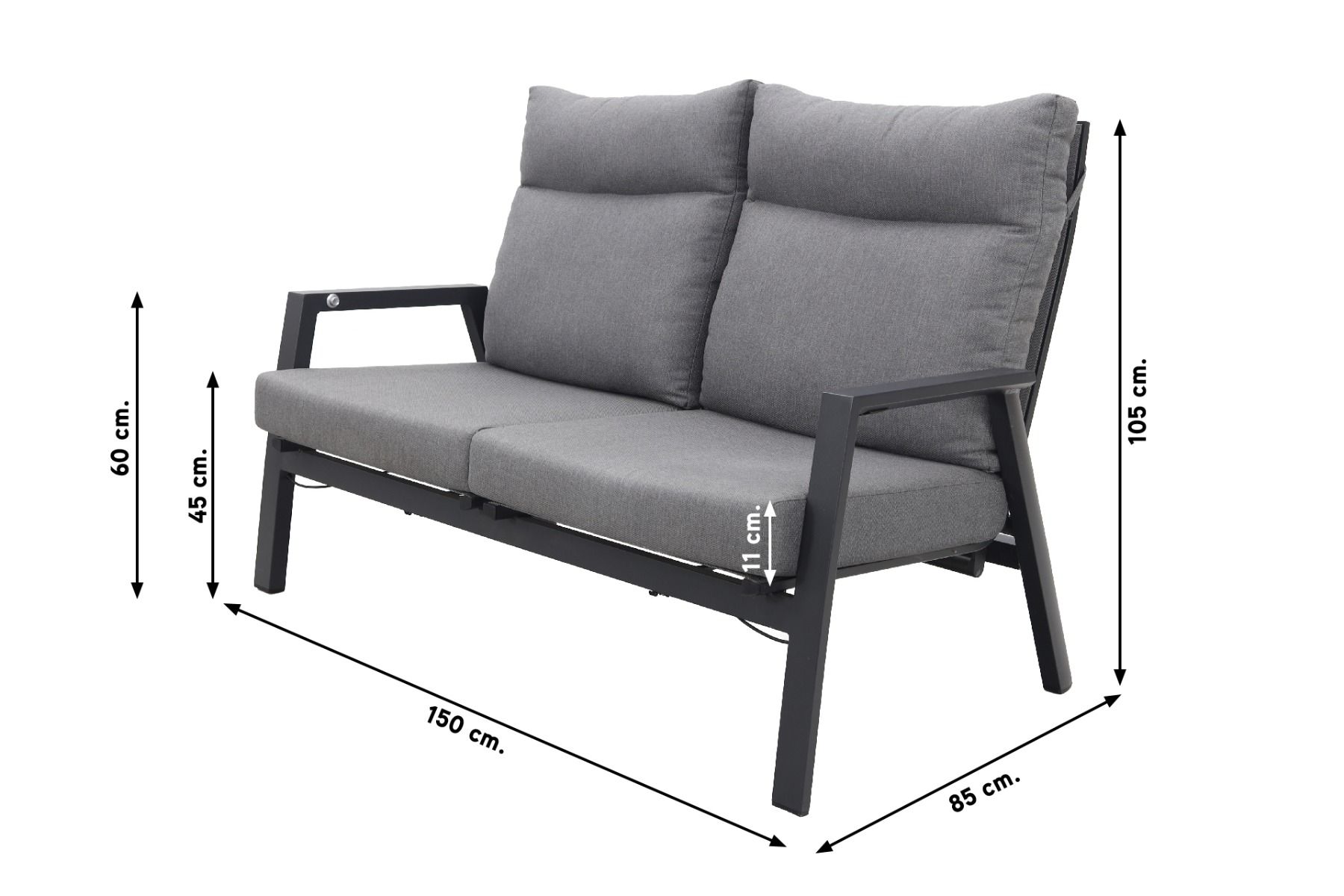 Azoren 2-zitsbank verstelbaar - Antraciet