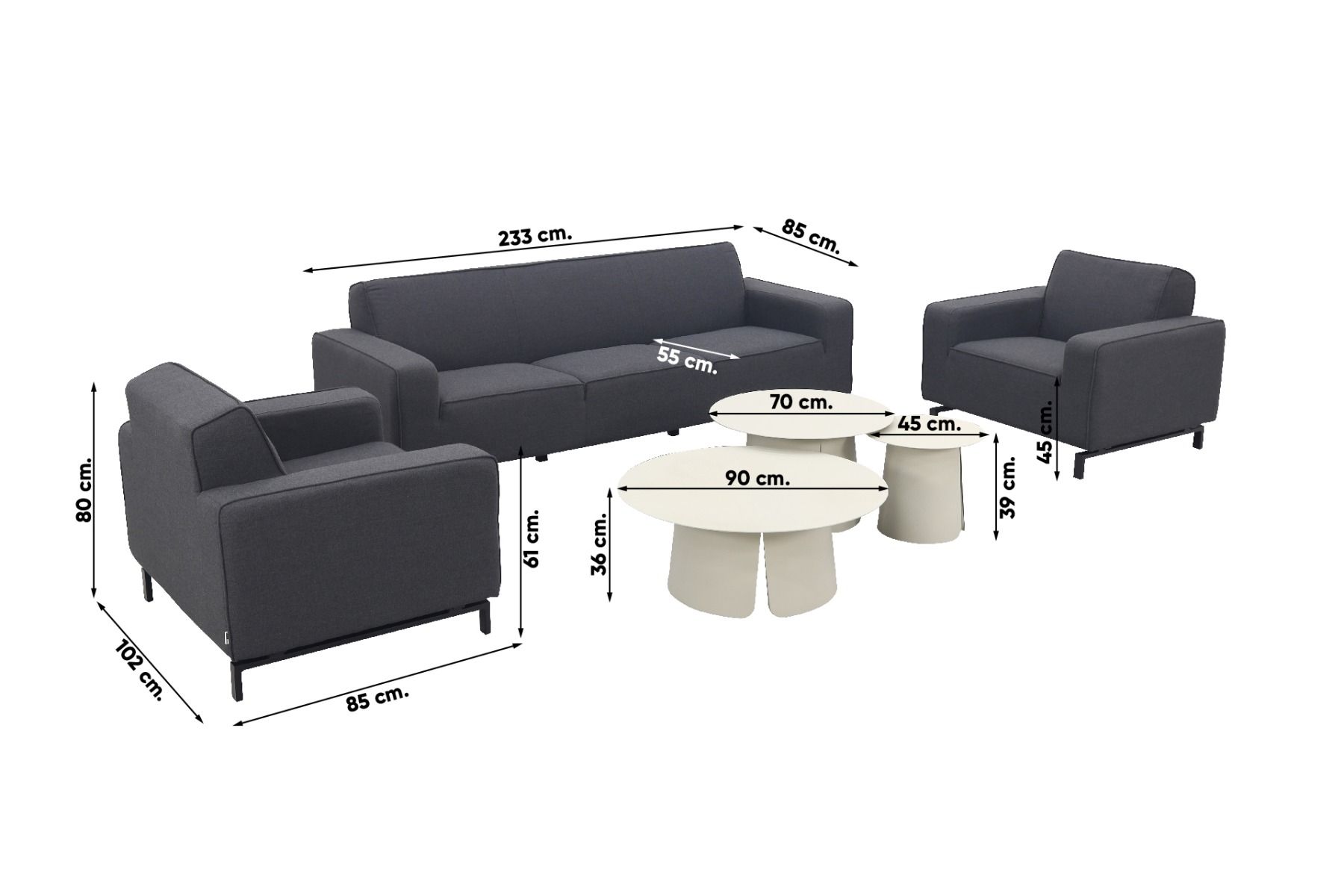 - Inclusief 3 loungetafels!