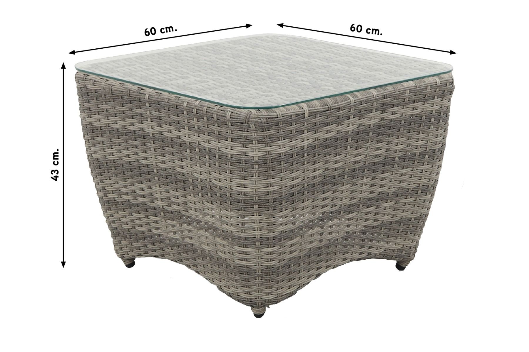 De Casablanca koffietafel is, als de de stoelen, vervaardigd uit aluminium en wicker. Het frame is van aluminium zodat deze salontafel niet te zwaar is. De tafel is hierdoor gemakkelijk te verplaatsen. Daaromheen is het 2-ply wicker gevlochten. Dit zorgt voor de uitgesproken Casablanca uitstraling. Als tafelblad is er een glazen platen op het wicker bevestigd. Dit zorgt er voor dat je zonder wiebelen je drinken kan plaatsen.