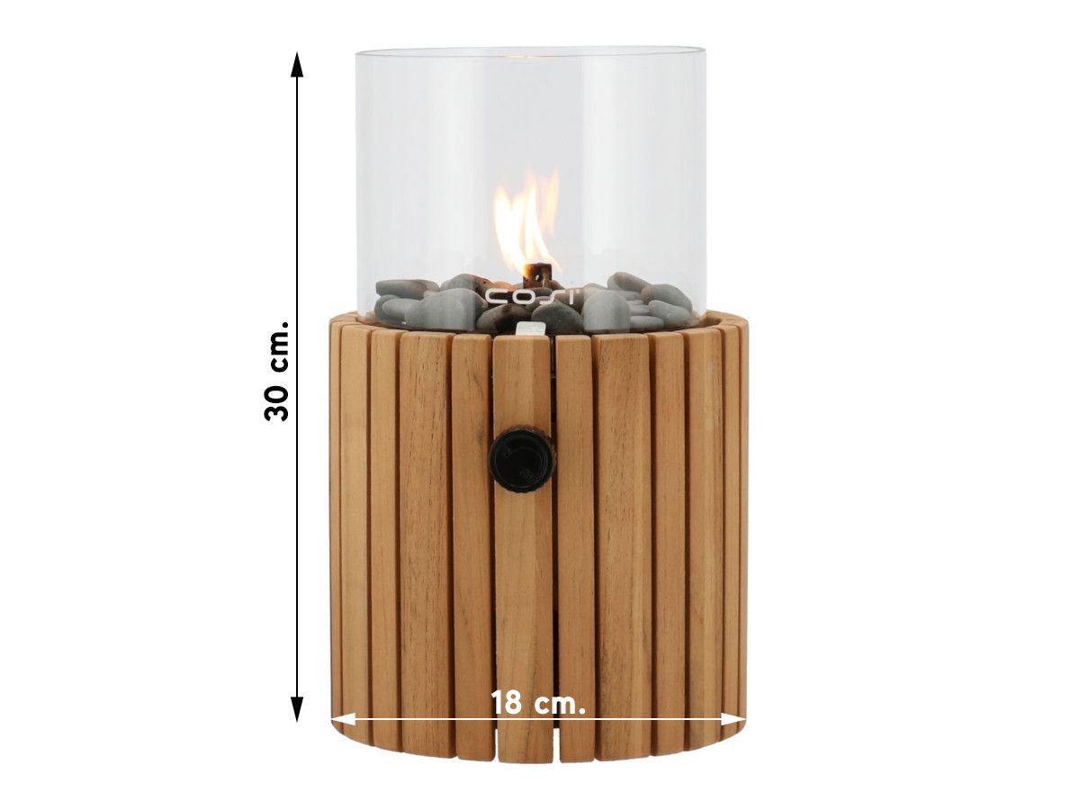 Deze sfeervolle gaslantaarn van het kwaliteitsmerk Cosi wordt omarmd door prachtig teak hout. De Cosiscoop Timber teak is ideaal om uw avonden extra sfeer te geven. Ze zijn geschikt voor zowel buiten en binnen mits de ruimte goed geventileerd is en een minimale oppervlakte heeft van 30m². De gaslantaarn werkt op een 190 grams gascartouche en brandt tot wel zes uur.  De diameter van de gaslantaarn is 18 cm en de hoogte is 30 cm. De Cosiscoop Timber teak gaslantaarn is handzaam, eenvoudig in gebruik en een ultieme sfeermaker.