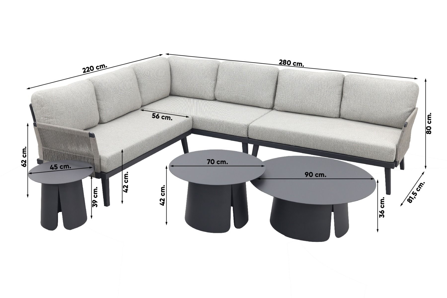 De Velora koffietafels zorgen ervoor dat jouw tuin gelijk anders aanvoelt. Deze koffietafels zijn gemaakt in de kleur 'royal grey' en worden geleverd in 3 verschillende afmetingen. Het antraciete aluminium geeft een stoere uitstraling. De massieve onderkant van de tafels zorgt juist voor een moderne look. In de massieve onderkant zit een split, die voor een unieke uitstraling zorgt. Doordat ervoor aluminium is gekozen als materiaal, zijn deze tafels licht van gewicht. Zo verplaats je ze gemakkelijk door de tuin heen. Dankzij de verschillende afmetingen maak je een speels effect. Het biedt ook de mogelijkheid om met verschillende opstellingen te spelen.