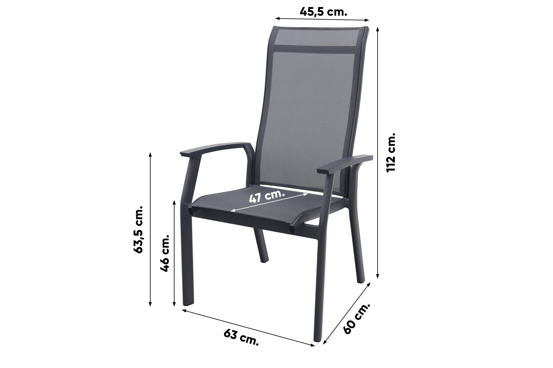 De Madino Excellent tuinstoel is voor veel doeleinden geschikt. Zowel in de horeca als op een vakantiepark. Maar ook voor privégebruik is de Madino Excellent uitermate geschikt. Ideaal wanneer je een verjaardagsfeestje viert. Je schuift ‘m er zo bij want hij weegt bijna niks. Past perfect op je terras en is eenvoudig weer op te bergen doordat de stoelen stapelbaar zijn, ideaal toch?! Het stevige aluminium frame is voorzien van een beschermende coating in de kleur antraciet. De zitting is gemaakt van stevig textileen en zorgt voor voldoende zitcomfort.
