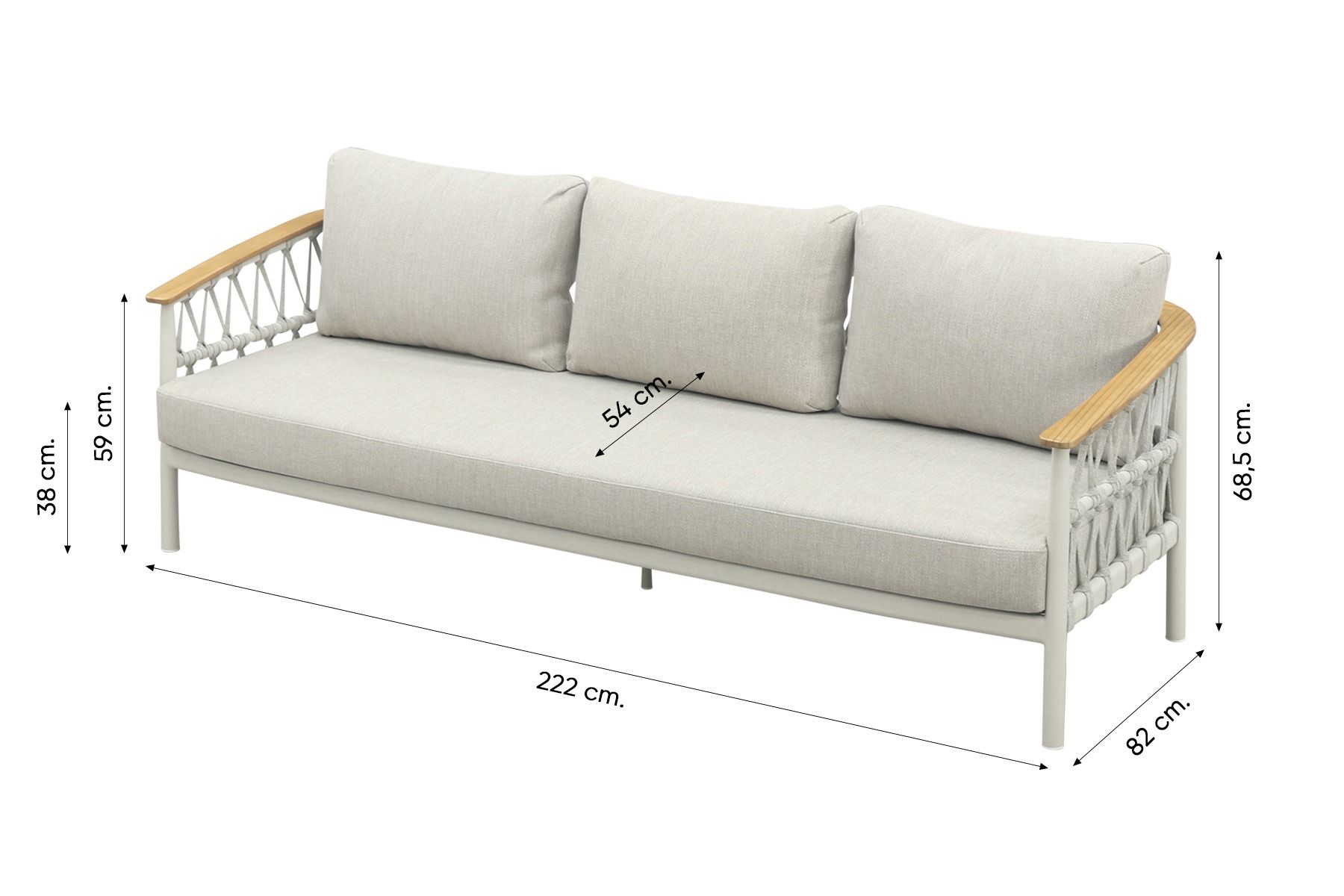 Flora/Liv stoel-bank loungeset – Light rope/Teak