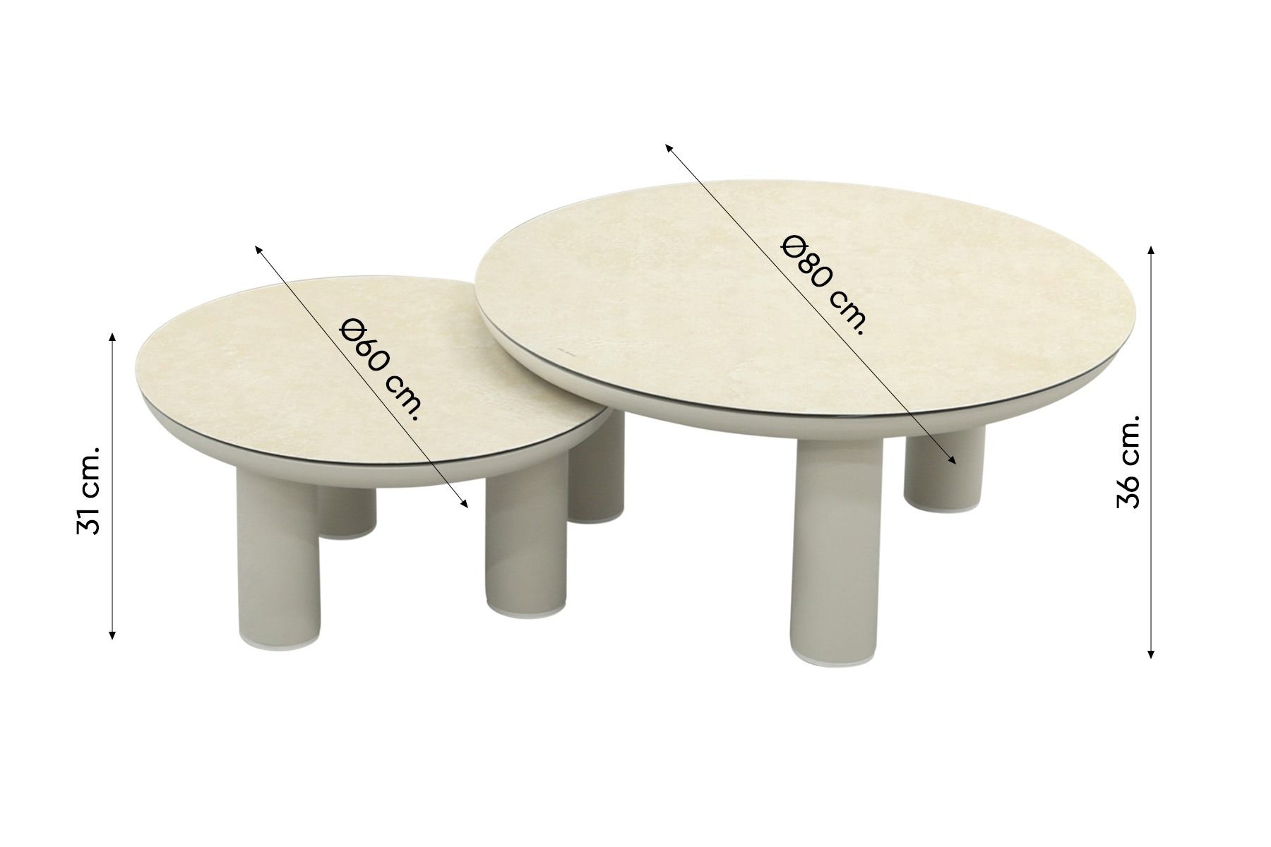 - Twee tafels in verschillende formaten en hoogtes (⌀60 en ⌀80 cm)