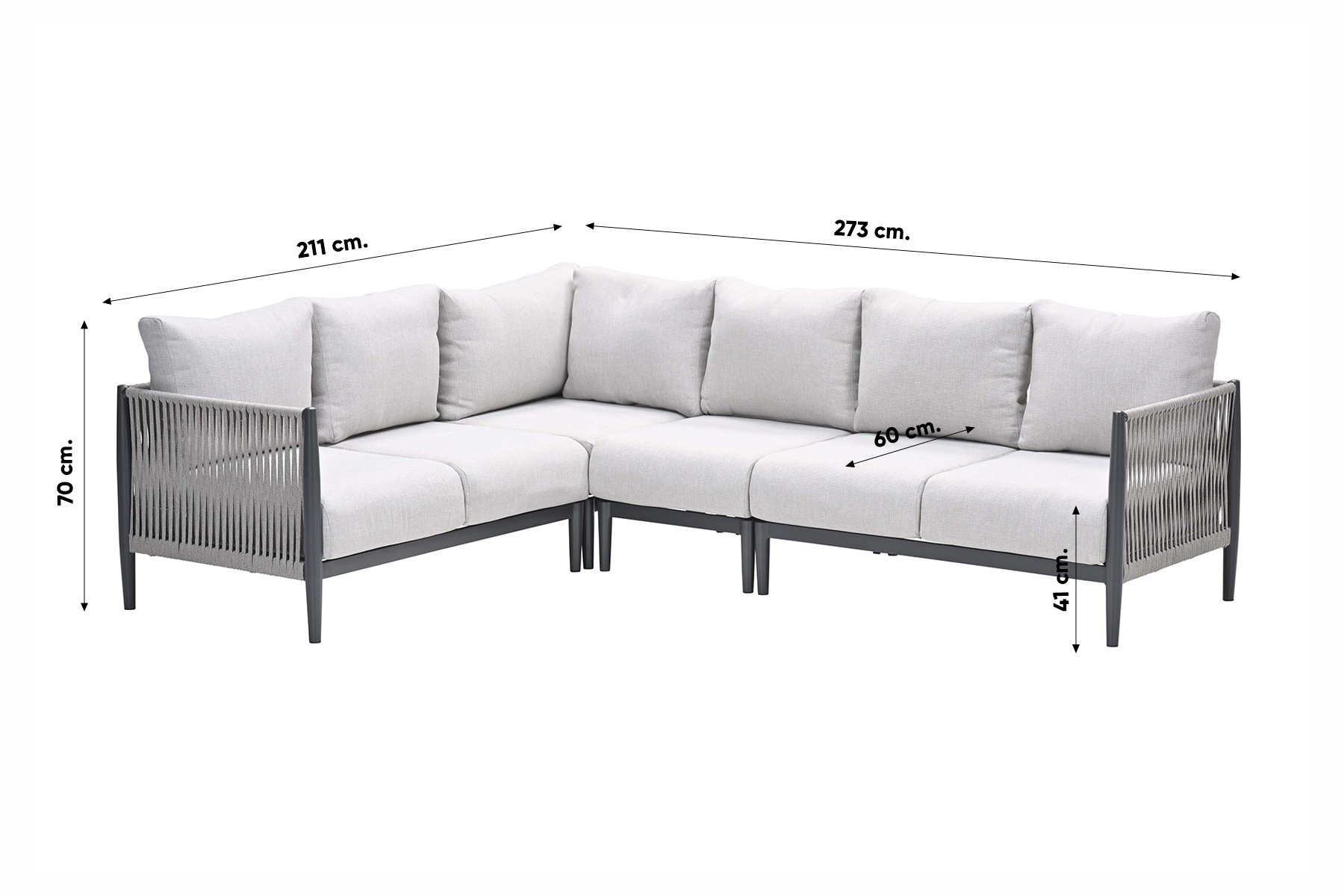 Ben je op zoek naar een luxe loungeset die zowel stijlvol als veelzijdig is? De GI Diamo lounge-dining hoekset is de perfecte keuze! Het ontwerp, met zijn elegant gevlochten rope, voegt een luxe flair toe aan je buitenruimte. Het speelse aluminium frame, breder in het midden, geeft de set een unieke uitstraling die echt de aandacht trekt. De comfortabele hoekbank en loungestoel biedt voldoende plek voor zes personen, ideaal om samen te genieten van het buitenleven.Dankzij de hogere loungetafel kun je zowel loungen als dineren, wat deze set extra praktisch maakt. De kussens bieden ultiem comfort, zodat je urenlang kunt ontspannen. Bestel de set snel online. Je bent ook van harte welkom in één van onze showrooms in Opheusden, Duiven of Apeldoorn.