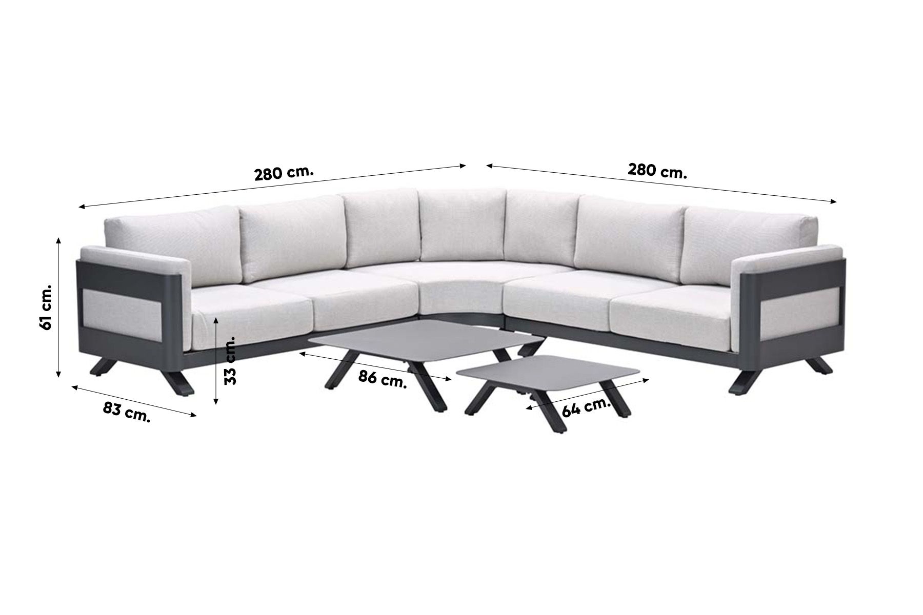 GI Realdo loungeset (5-delig) - Carbon black/Zand