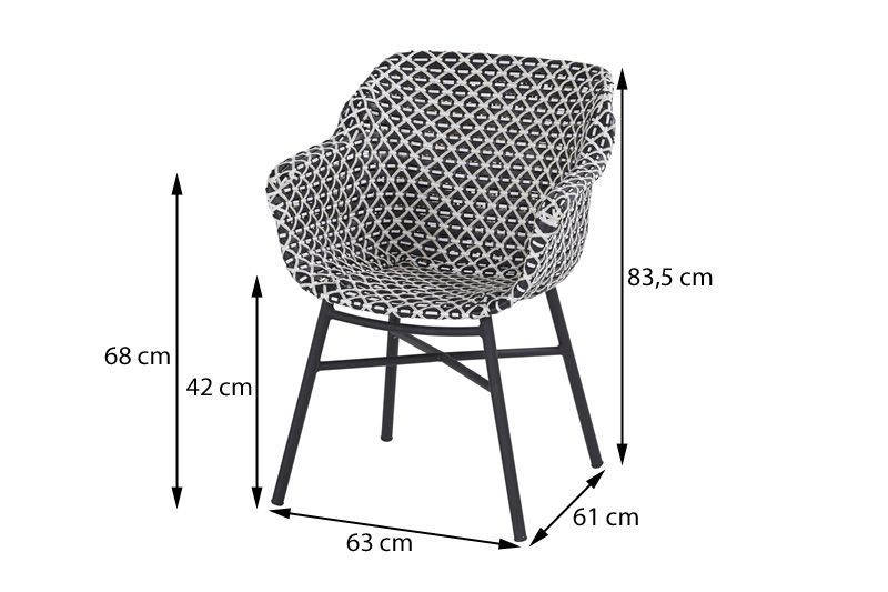 Deze comfortabele dining stoel is een absolute uitblinker op uw terras. De opvallende kleurstelling en het wicker materiaal in combinatie met het aluminium onderstel geven deze stoel een unieke uitstraling. De Hartman Delphine Dining stoel white - black is bestand tegen diverse weersinvloeden en is makkelijk schoon te houden. De Hartman Delphine Dining stoel heeft een kuip van stevig wicker en een gecoat aluminium onderstel. De voorgevormde kunststof kuip geeft de Hartman Delphine dining stoel extra comfort. Daarnaast is het solide frame gemaakt van lichtgewicht aluminium, wat ideaal is bij het verplaatsen van de Hartman Delphine dining stoel. De materialen zijn onderhoudsvriendelijk en eenvoudig schoon te houden met water. Door de hoogte van 42 cm. is het een ideale stoel voor aan de eettafel. De Hartman Delphine dining stoel geeft een goede steun in de rug waardoor lang tafelen geen enkel probleem is.Â
