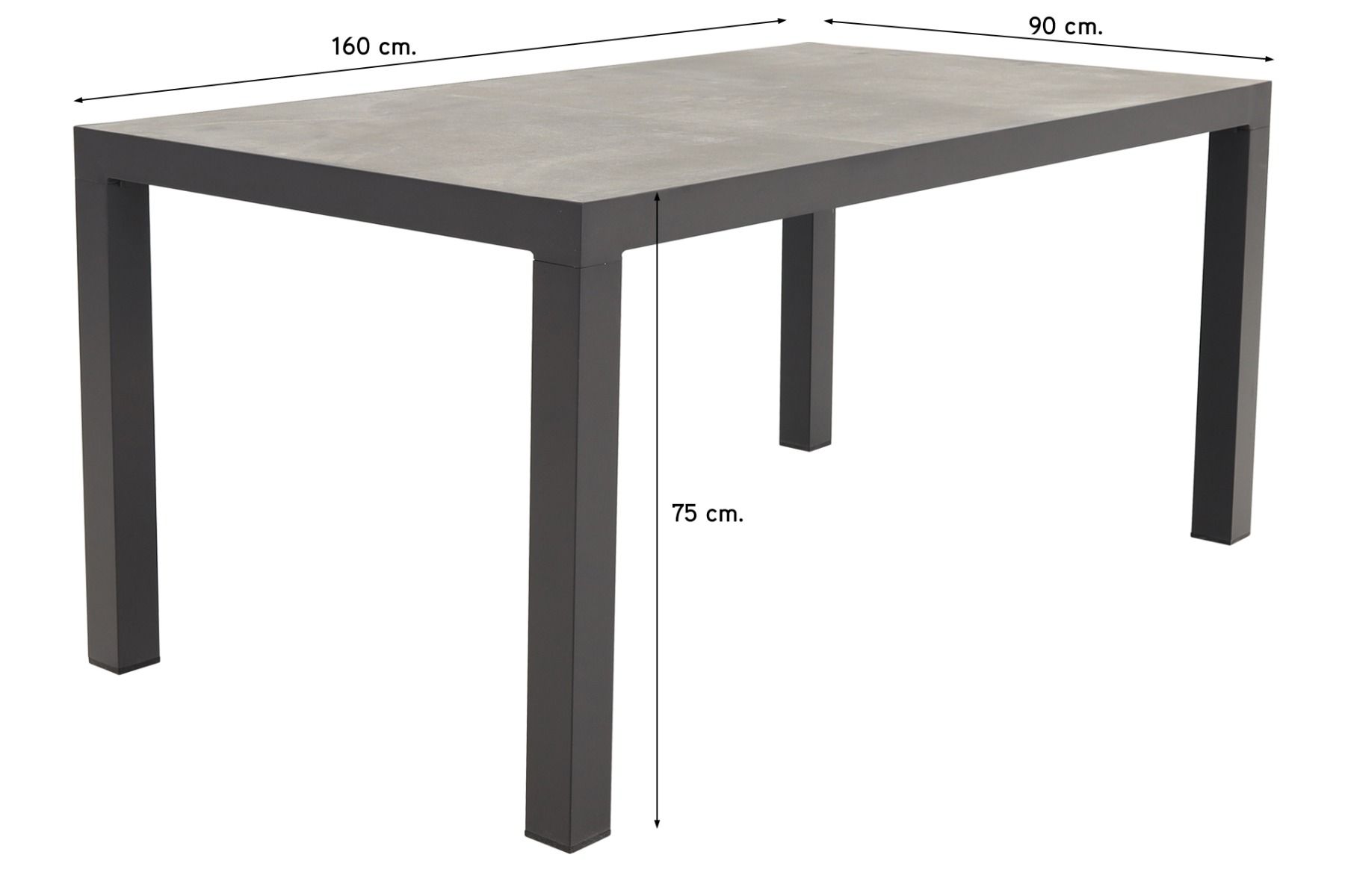 De President tuintafel heeft een aluminium frame. Het aluminium frame is afgewerkt met een beschermende poedercoating die kras- en stootvast is. Voordeel van aluminium is dat dit materiaal licht in gewicht is, niet kan verroesten en weinig onderhoud nodig heeft. Hierdoor ervaar je jarenlang plezier van deze stijlvolle tuintafel. Als tafelblad is er gekozen voor keramiek. Keramiek is een harde steensoort en dus perfect geschikt als tafelblad. Het keramiek heeft een betonlook waardoor de tafel een stoere uitstraling krijgt. Net als het frame heeft ook het tafelblad weinig onderhoud nodig. Af en toe schoonmaken met een nat doekje volstaat.