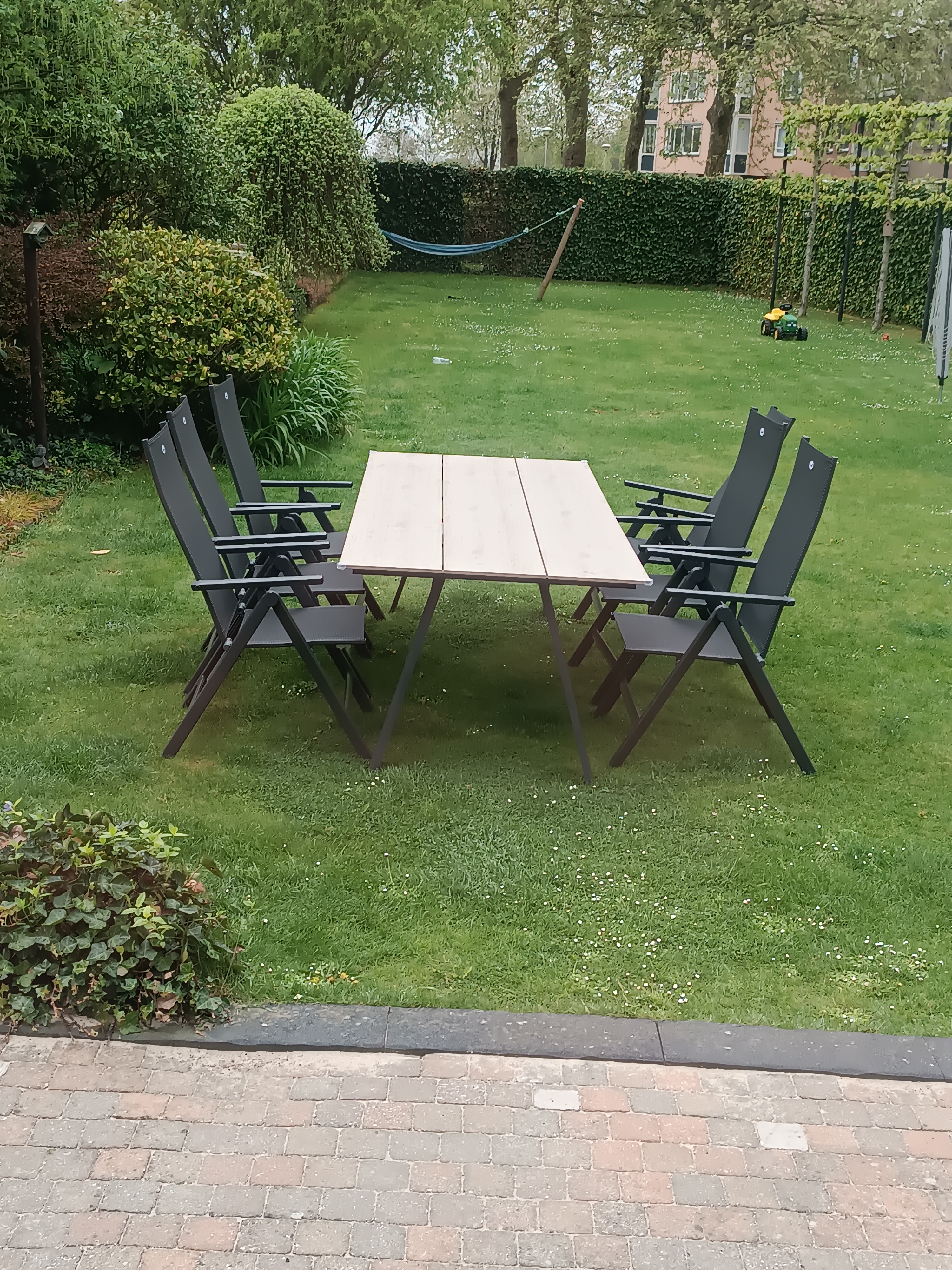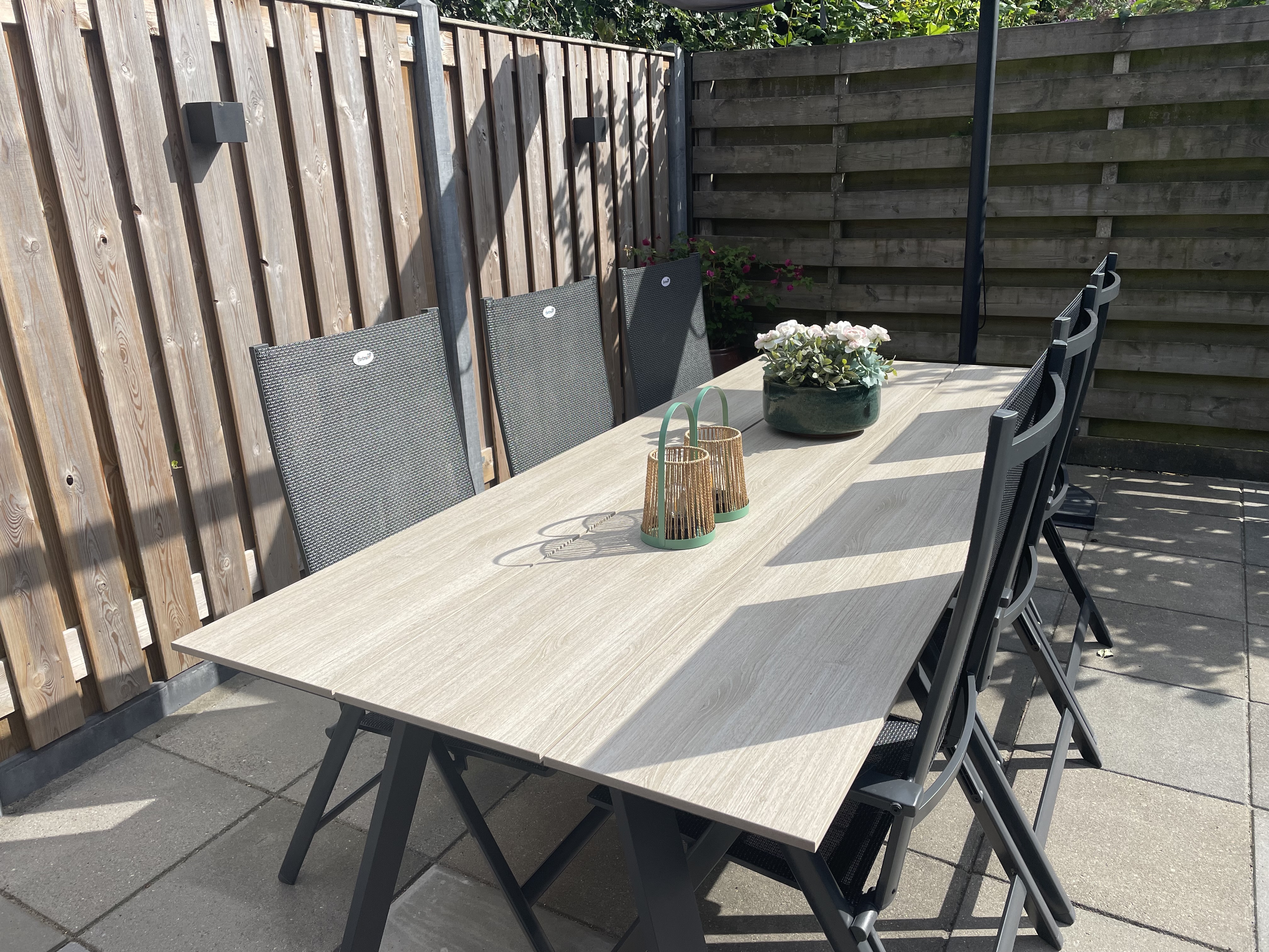 5 / 5Prachtige set, heel blij mee!Ik ben ontzettend tevreden met deze tuinset! De verstelbare stoelen zitten heerlijk en zijn makkelijk in gebruik. De tafel ziet er stijlvol uit en past perfect in onze tuin. Het materiaal voelt stevig en degelijk aan, en de uitstraling is modern en warm tegelijk. Alles was netjes geleverd en eenvoudig te plaatsen. Al met al echt een aanwinst voor onze tuin – ik geniet er nu al volop van!0 lezer(s) vonden deze review behulpzaamVind je deze review behulpzaam?