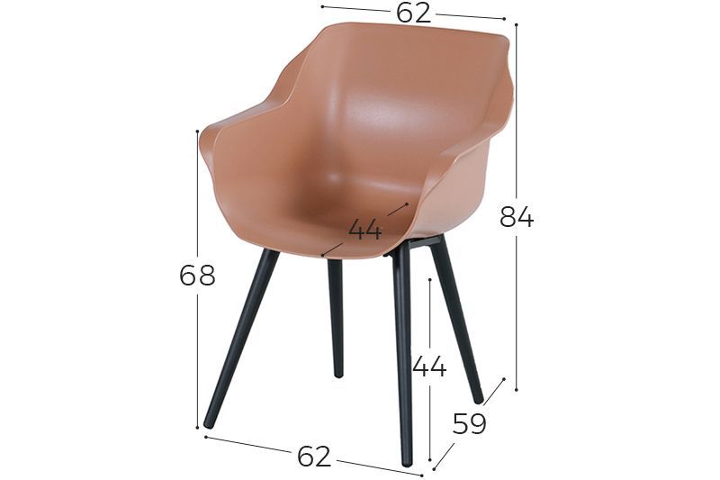 De Hartman Sophie is een hippe tuinstoel met een voorgevormde zitkuip. Hierdoor krijgt je rug maximale ondersteuning. De tuinstoel heeft een aluminium frame welke behandeld is met een zwarte poedercoating. Het voordeel van aluminium is dat het niet kan verroesten en weinig onderhoud nodig heeft. Kenmerkend aan de Hartman Sophie element zijn de poten. Bij de Element serie hebben de poten een vierkante vormgeving. Het zitgedeelte van de Hartman Sophie tuinstoel is gemaakt van kunststof. Kunststof heeft dezelfde eigenschappen als aluminium en is perfect geschikt voor gebruik buitenshuis. Achterin het zitgedeelte zijn 2 gaatjes gemaakt zodat het (regen)water afgevoerd wordt. De brede armleggers zorgen voor extra comfort.