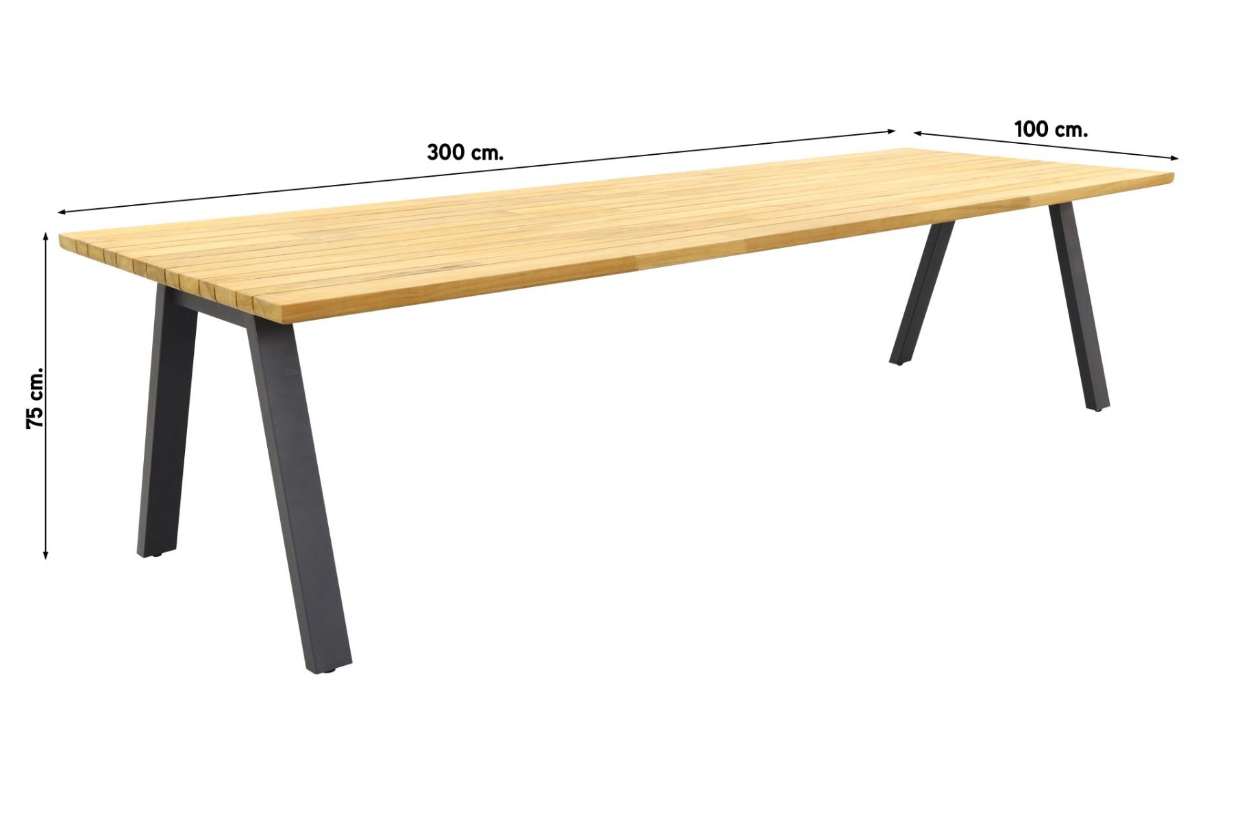 De Ambassador tuintafel van Taste heeft een teakhouten blad. Teak hout is een harde houtsoort en daarmee perfect geschikt voor het gebruik in tuintafels. Teak hout zal na verloop van tijd gaan verkleuren en haarscheurtjes gaan vertonen. Dit is niet erg want het maakt de tafel juist nog stoerder. Mocht je de voorkeur hebben om de originele kleur te behouden van het teak hout. Dan adviseren wij om de tafel te behandelen met een protector. Deze kun je eenvoudig mee bestellen in de voordeelbundel. Om vlekken te voorkomen kun je de teak tafel ook behandelen met een teak shield. Dit onderhoudsmiddel zorgt er tevens voor dat het teak water- en vuilafstotend is. Let op dat je de teak tuintafel nooit afdekt met een hoes. Wanneer het tafelblad volledig afgesloten wordt kan het niet “ademen” en kunnen er lelijke vlekken ontstaan.