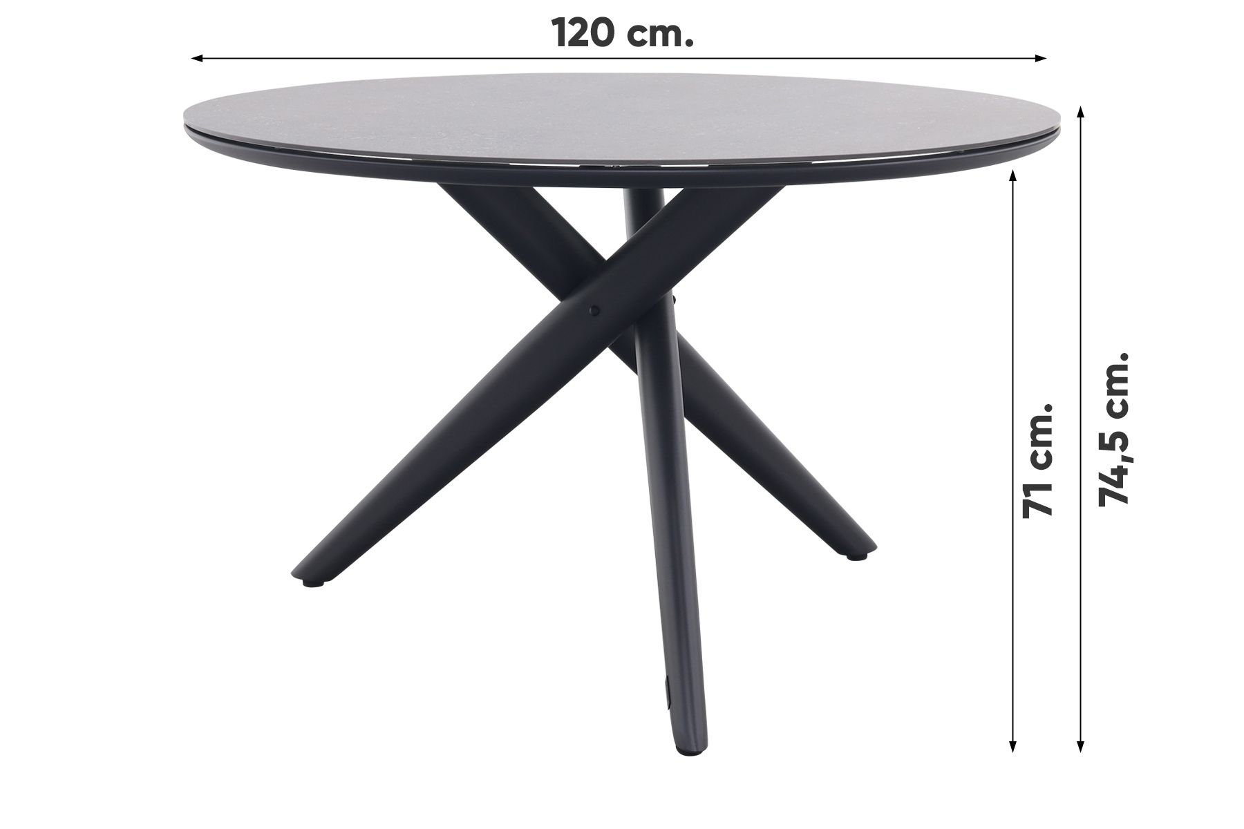 De poten van de ronde tuintafel Dublin hebben een kruisvorm en zijn gemaakt van aluminium. Dit materiaal is licht van gewicht, stevig en het materiaal kan niet verroesten. Het tafelblad is gemaakt van "Sintered stone" eigenlijk een soort keramiek welke krasvast, hitte bestendig en uv bestendig is. Kortom het ideale materiaal om te verwerken in een tafelblad.
