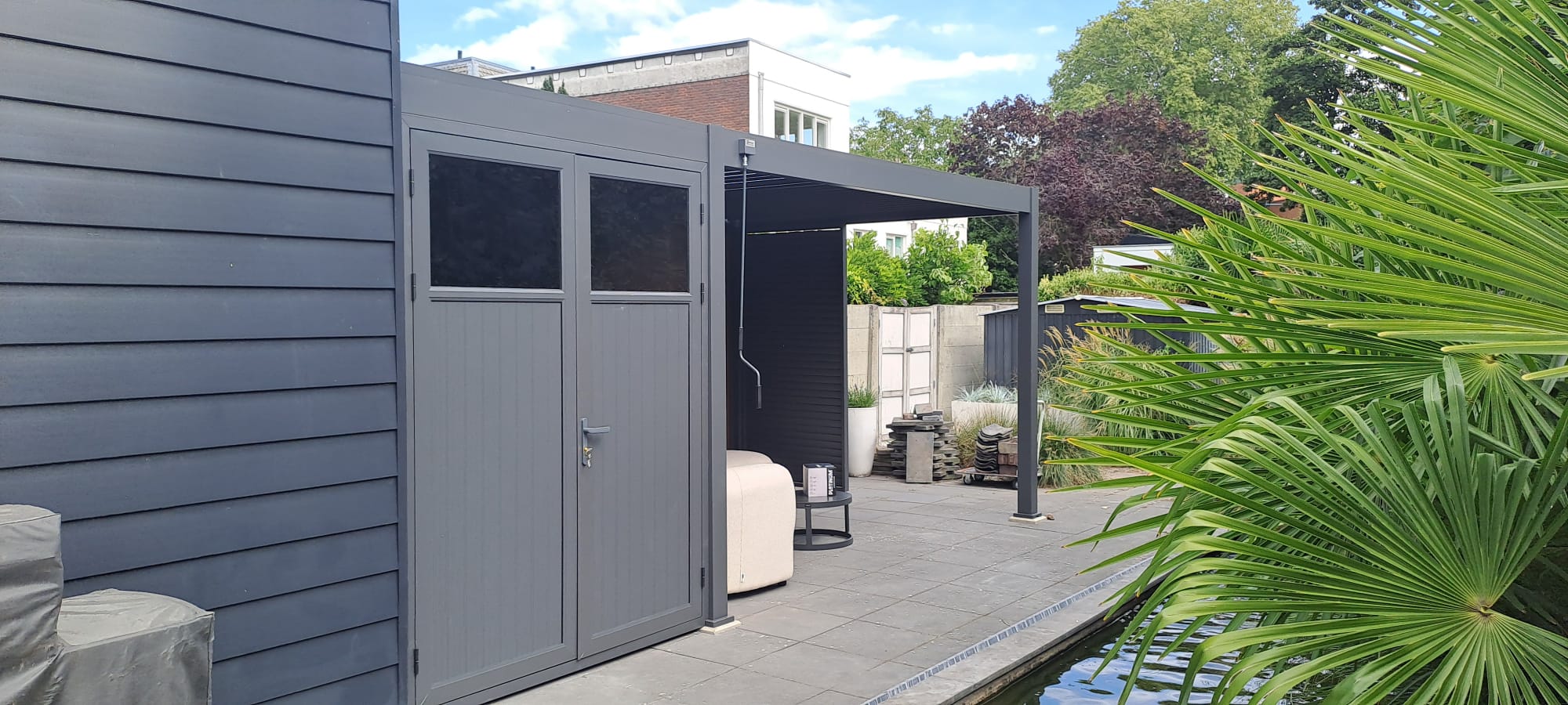 Lamellen overkapping + berging - 3x6 m. - Aluminium - Antraciet - Advance