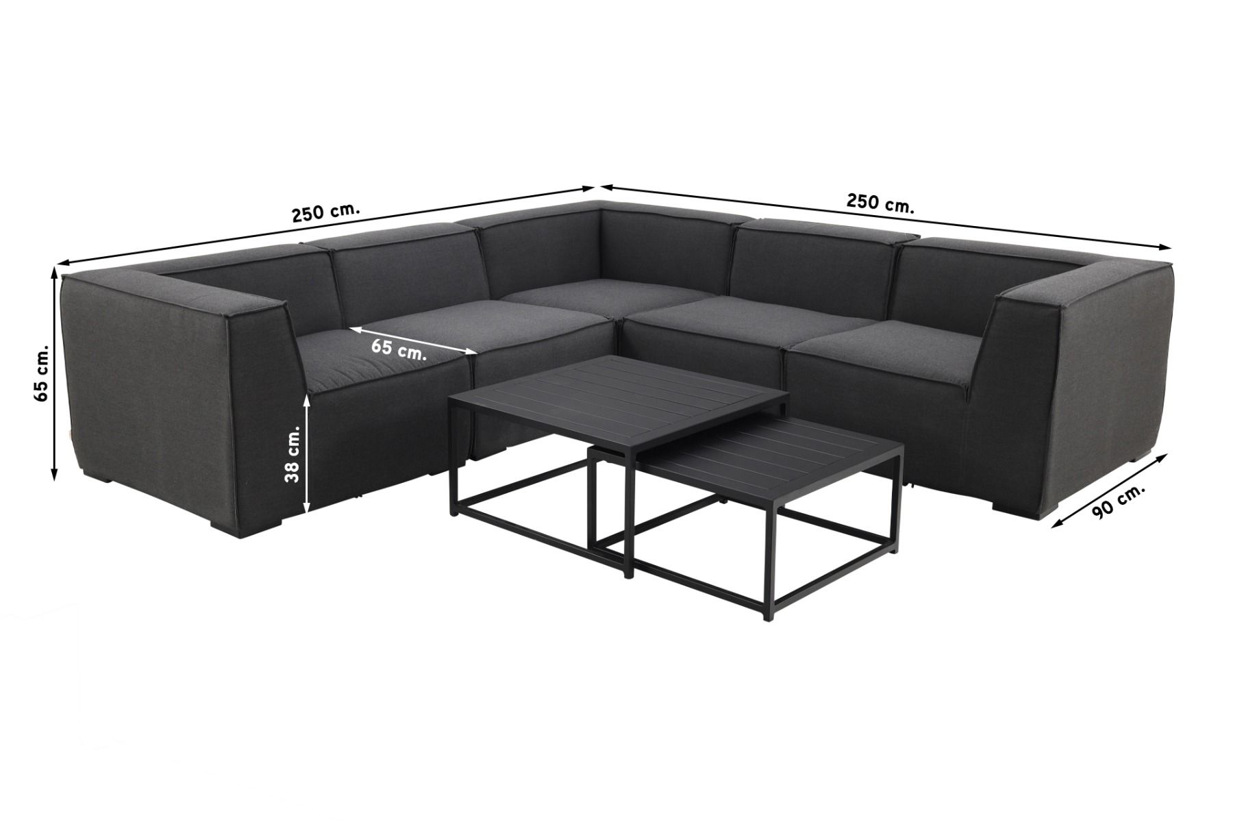 De Liberty Sunbrella loungeset bestaat uit allemaal losse elementen. Bij dit model zijn dat 3 hoekelementen, 2 middenelementen en 2 tafels van Royalty. De losse elementen kan je naar eigen wens indelen. Op zoek naar andere opstellingen van de Liberty lounge set? Kijk eens hier. De Liberty loungeset elementen hoeven bij levering niet meer gemonteerd te worden. Je hoeft alleen de juiste opstelling te maken en je kunt genieten van de zon!