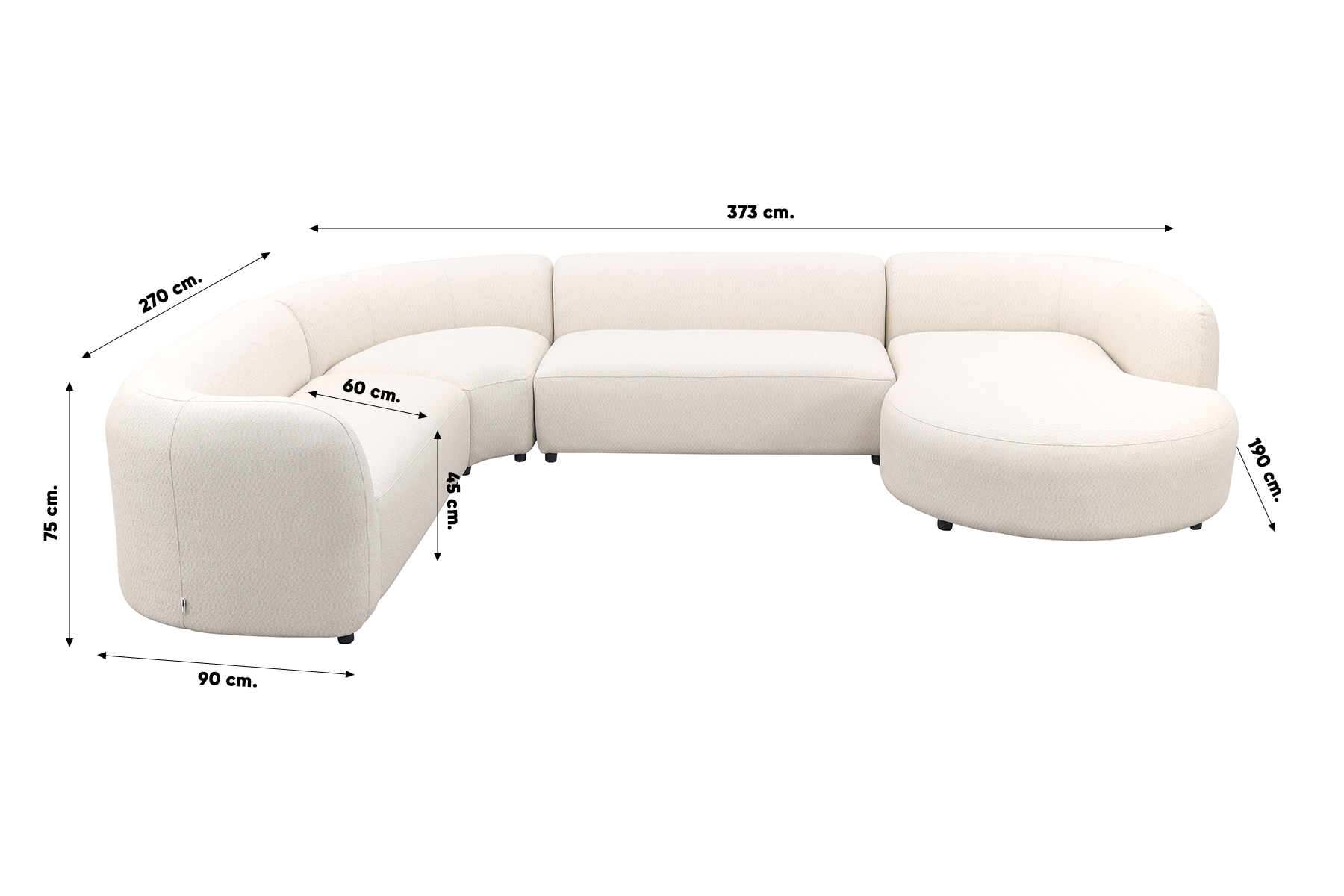 Madeira ronde u-vorm hoekbank + chaise longue links - Naturel Sunbrella