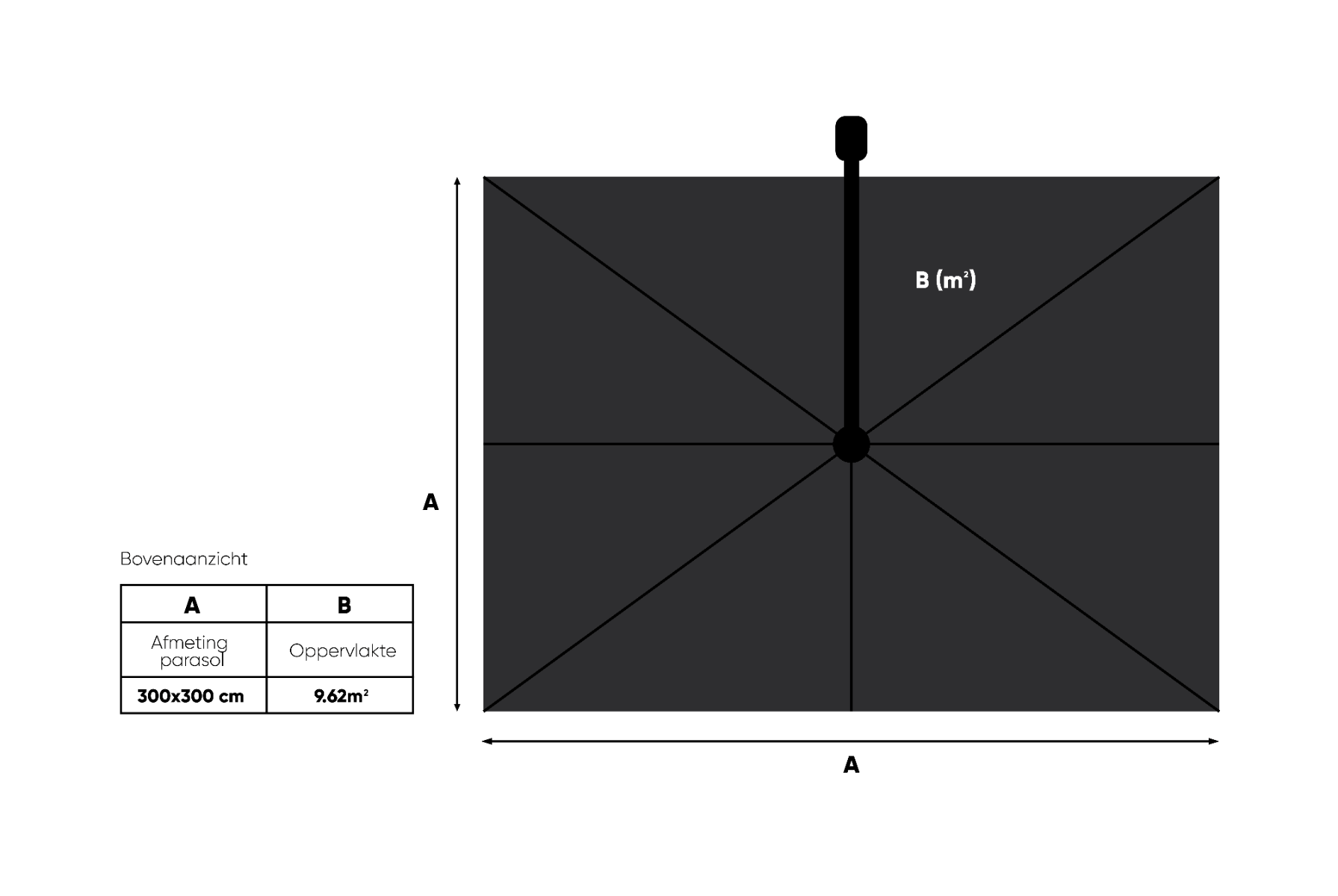 Eigenschappen Platinum Challenger Zweefparasol T2 Premium Glow 3x3 m. - Faded Black