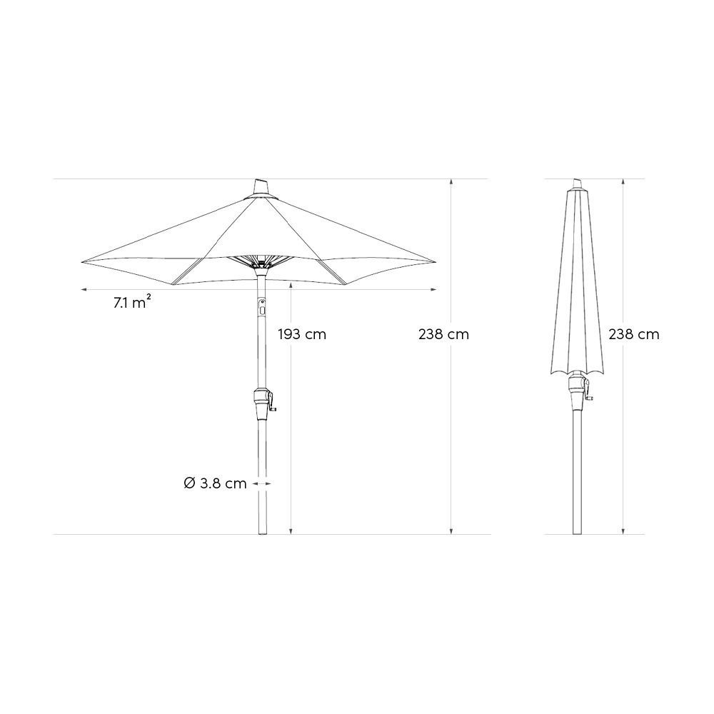 Met de Platinum Riva parasol kan je een heerlijke schaduwplek creëren. De Riva parasol is rond en heeft een doorsnede van 3 meter. Doormiddel van het handige opdraaimechanisme kan je de parasol eenvoudig in- en uitklappen. De mast van de Riva bestaat uit twee delen. Dit zorgt ervoor dat je de parasol uit elkaar kan halen en gemakkelijk kunt opbergen. Het parasoldoek van de Riva parasol 3 meter is van goede kwaliteit, deze is namelijk gemaakt van 100% polyester. Daarnaast is het parasoldoek voorzien van een speciale vuil- en waterafstotende coating. Deze coating zorgt er ook voor dat het doek minder snel van kleur verschiet. Aan het uiteinde van de baleinen van de Riva parasol zijn speciale doekspanners gemaakt. Hierdoor staat het doek altijd mooi strak gespannen. De Riva parasol is voorzien van een handig kniksysteem. Hiermee kan je goed inspelen op de stand van de zon. Je kantelt het parasoldoek daarmee namelijk eenvoudig schuin in de baan van de zon. De parasol vangt in de schuine stand wel meer wind.