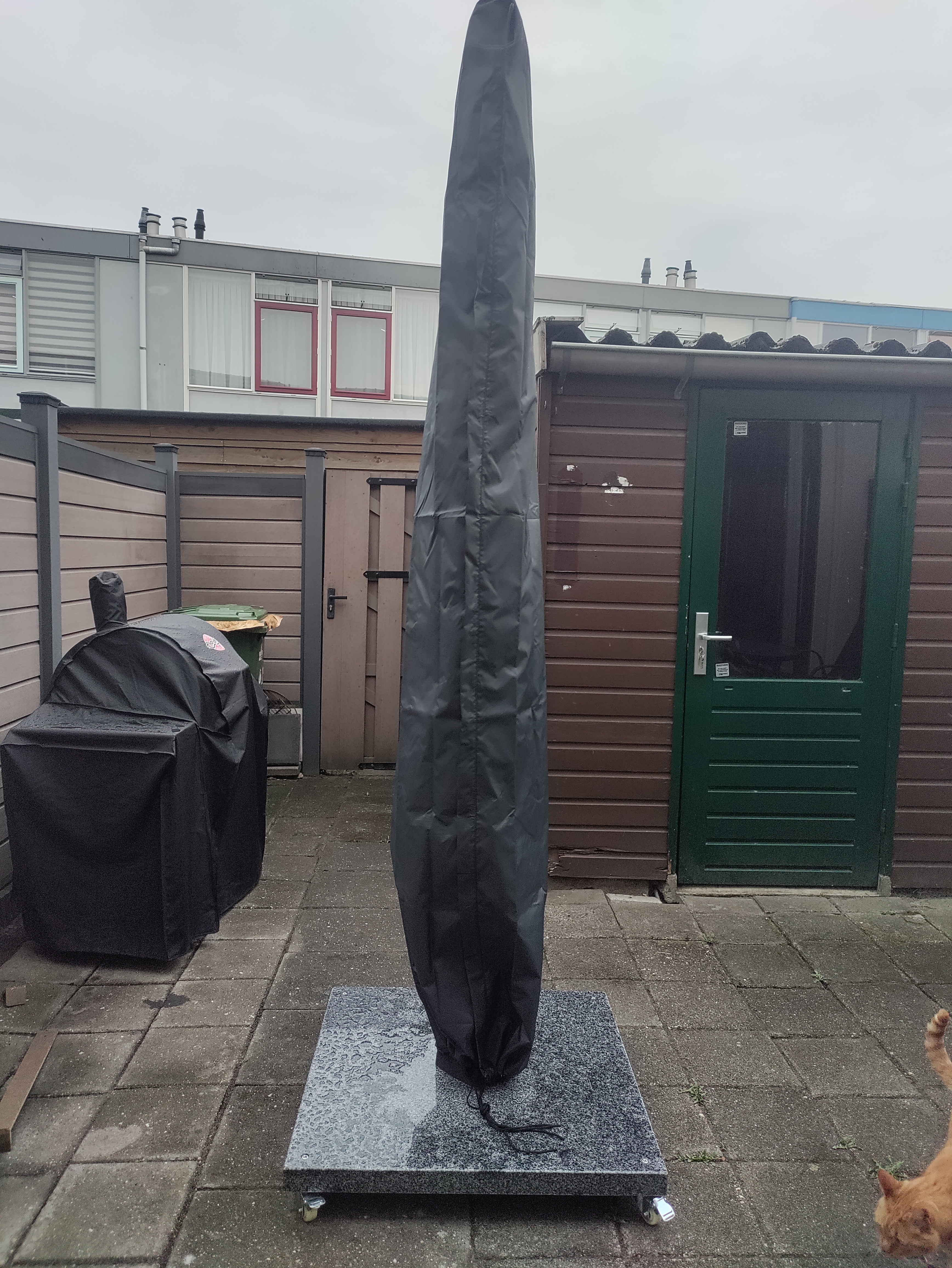 5 / 5Goede kwaliteit parasolMooie voet en parasol van goede kwaliteit! Bij geleverde hoes ook in orde. Hij is wel wat hoog dus hoes erop en eraf krijgen is een dingetje. Ik gebruik het uiteinde van een bezem. We hebben de hele dag de zon op de pui staan aan de achterkant. Parasol is precies groot genoeg om de zon van het raam af te houden. Bezorging was ook top!0 lezer(s) vonden deze review behulpzaamVind je deze review behulpzaam?
