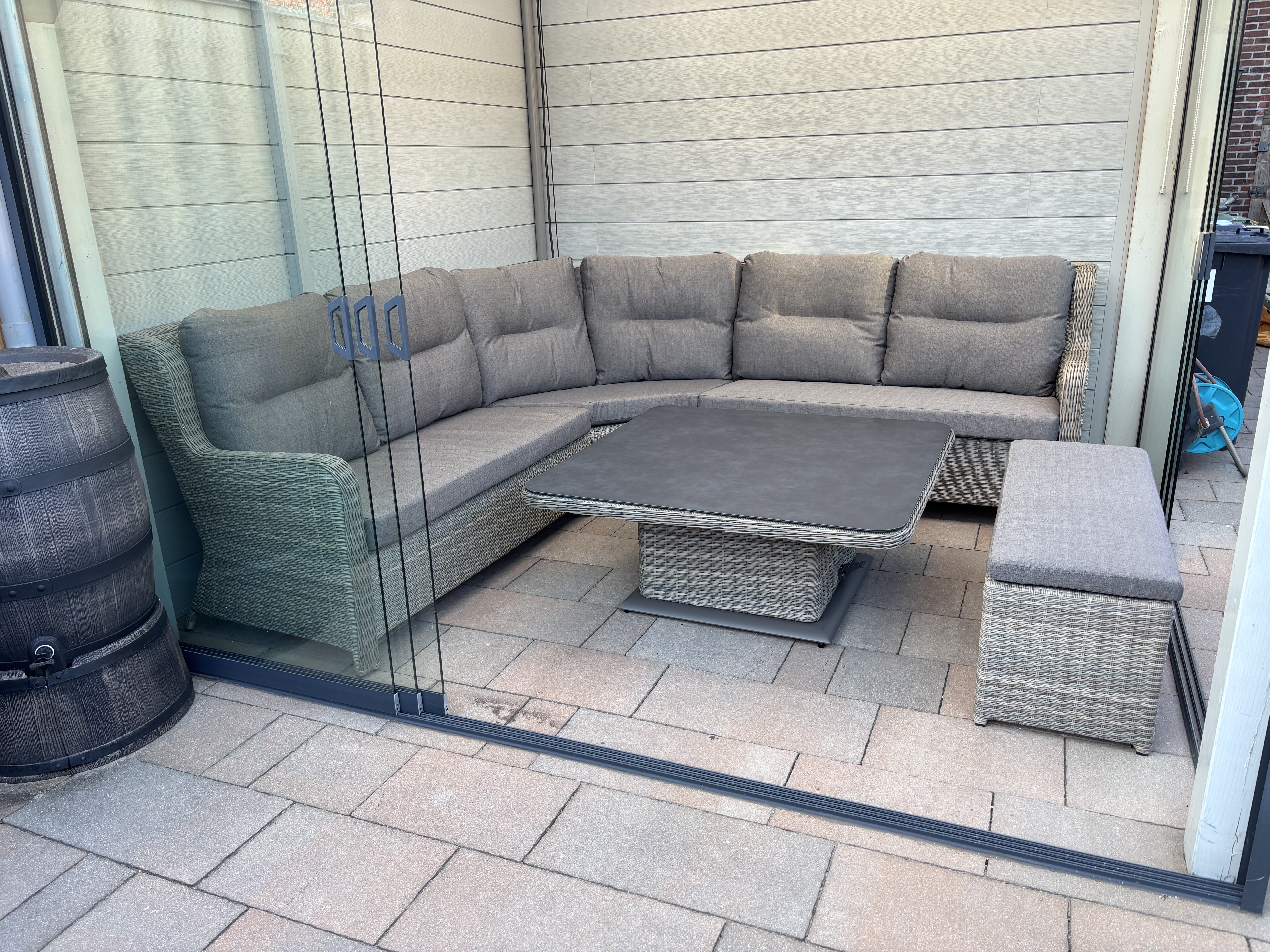 5 / 5Fijne Lounge dinning set.Hele fijne loungebank zit comfortabel , groot voordeel is de verstelbare tafel. Hoog lekker eten met je vrienden en later omlaag om lekker te borrelen.2 lezer(s) vonden deze review behulpzaamVind je deze review behulpzaam?
