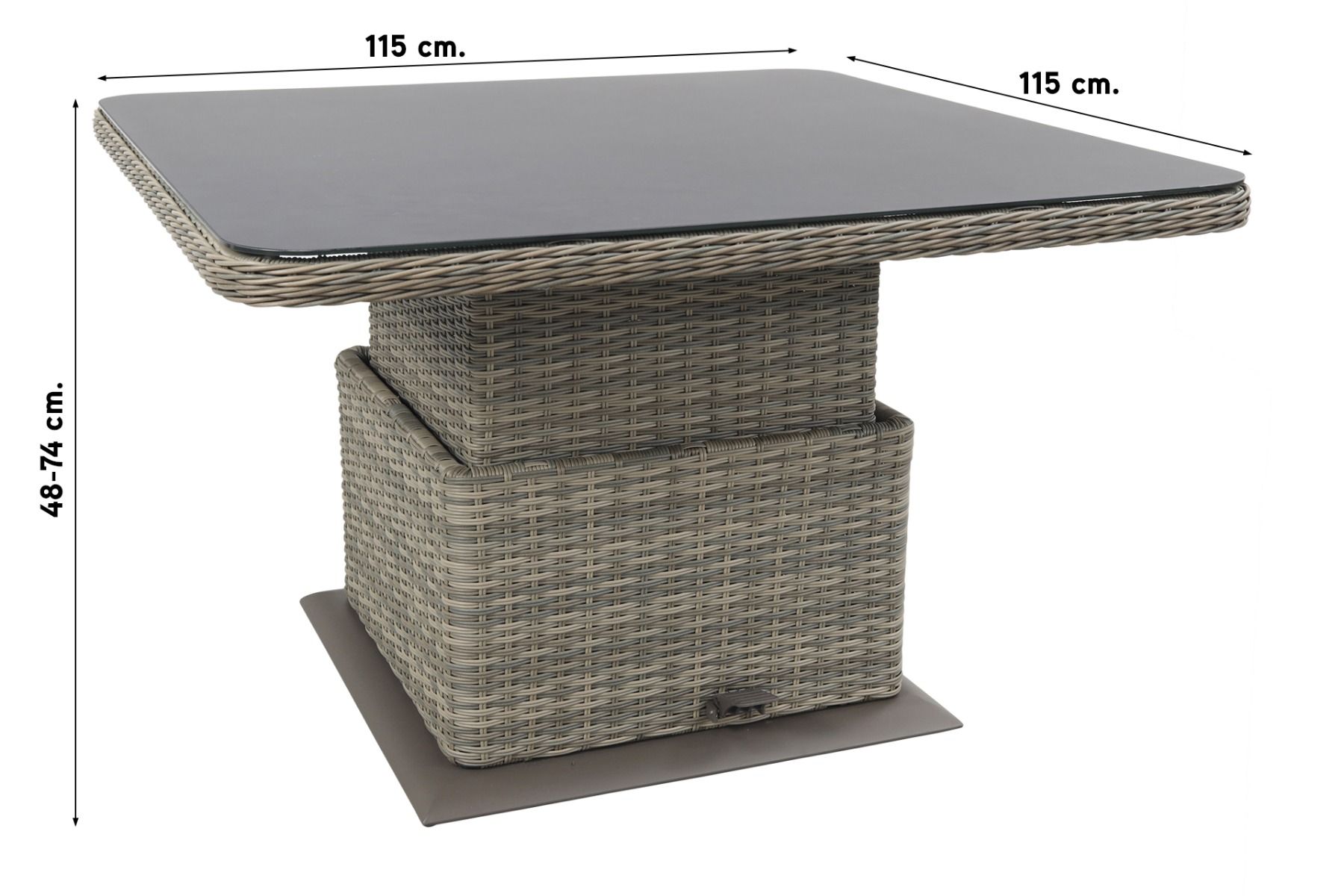 De Sandigo lounge dining set is gemaakt van hoogwaardige materialen die duurzaamheid en comfort garanderen. Het stevige frame is gemaakt van aluminium, omhuld met een onderhoudsarm kunststof vlechtwerk in een elegante kiezelkleur, vergelijkbaar met taupe. De zitkussens zijn voorzien van een ritssluiting, zodat ze eenvoudig gewassen kunnen worden. De rugkussens hebben een gecapitonneerde afwerking, wat zorgt voor een luxe uitstraling. De in hoogte verstelbare tafel, voorzien van een spraystone blad, biedt extra flexibiliteit; deze is gemakkelijk te bedienen via een pedaal en gasveer. Kortom, een stijlvolle en duurzame set die lang meegaat.