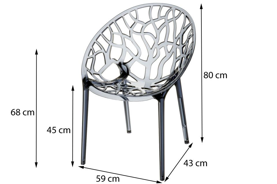 De Siesta Crystal stapelbare stoel is stevig en licht van gewicht. Het materiaal is kleurvast, 100% UV-bestendig en eenvoudig schoon te houden. Het unieke ontwerp heeft een glanzende look en is hierdoor een echte eye-catcher, prachtig voor zowel binnen als buiten. De Siesta Crystal stoel heeft een zithoogte van 45 cm, een breedte van 42 cm en een zitdiepte van 43 cm. Het maximale draaggewicht van de stoel is 150 kg. In de winter periode adviseren wij om de stoel binnen op te bergen.