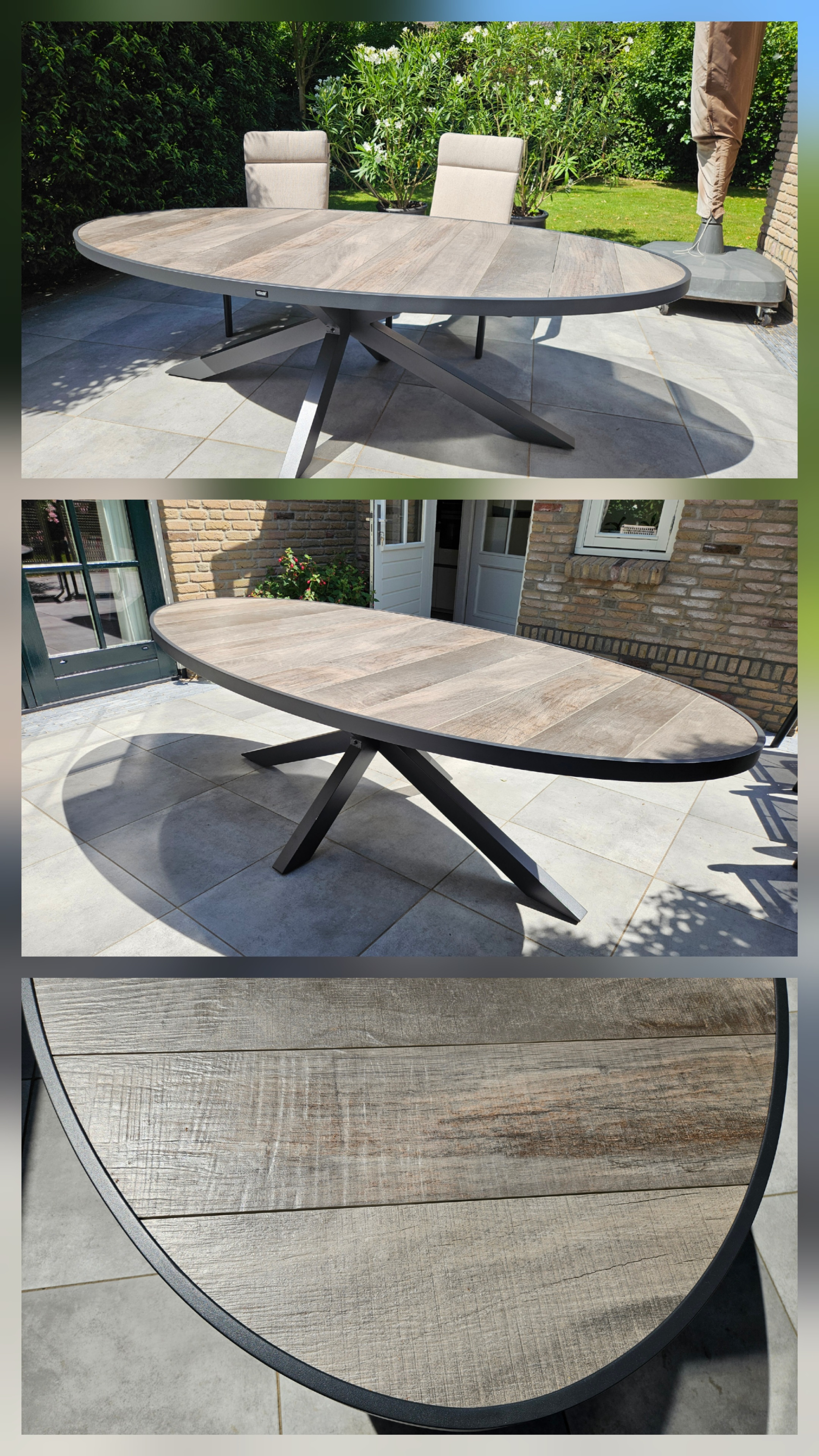 Silva tuintafel houtlook/keramiek - Ovaal - 240x115 cm.