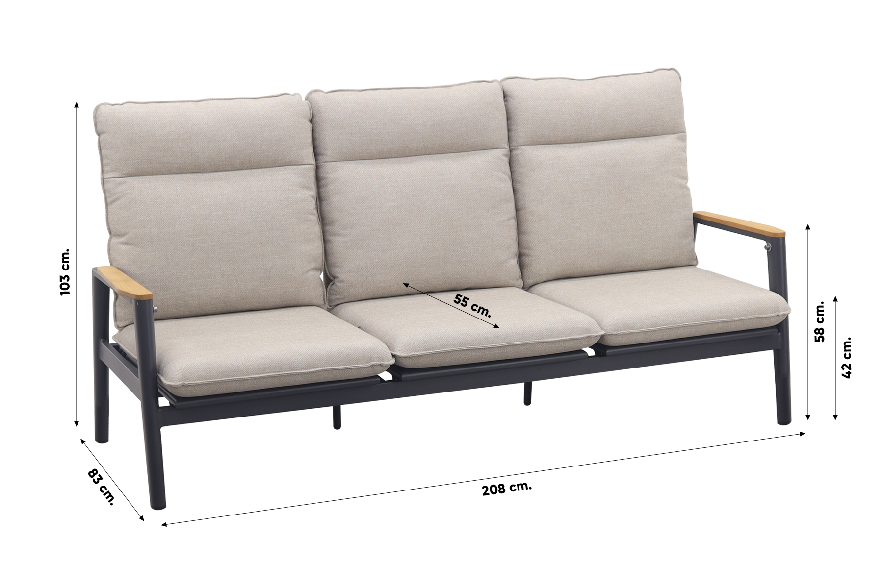 1x Solaro verstelbare 3-zits bank - Light rope / Teak arm