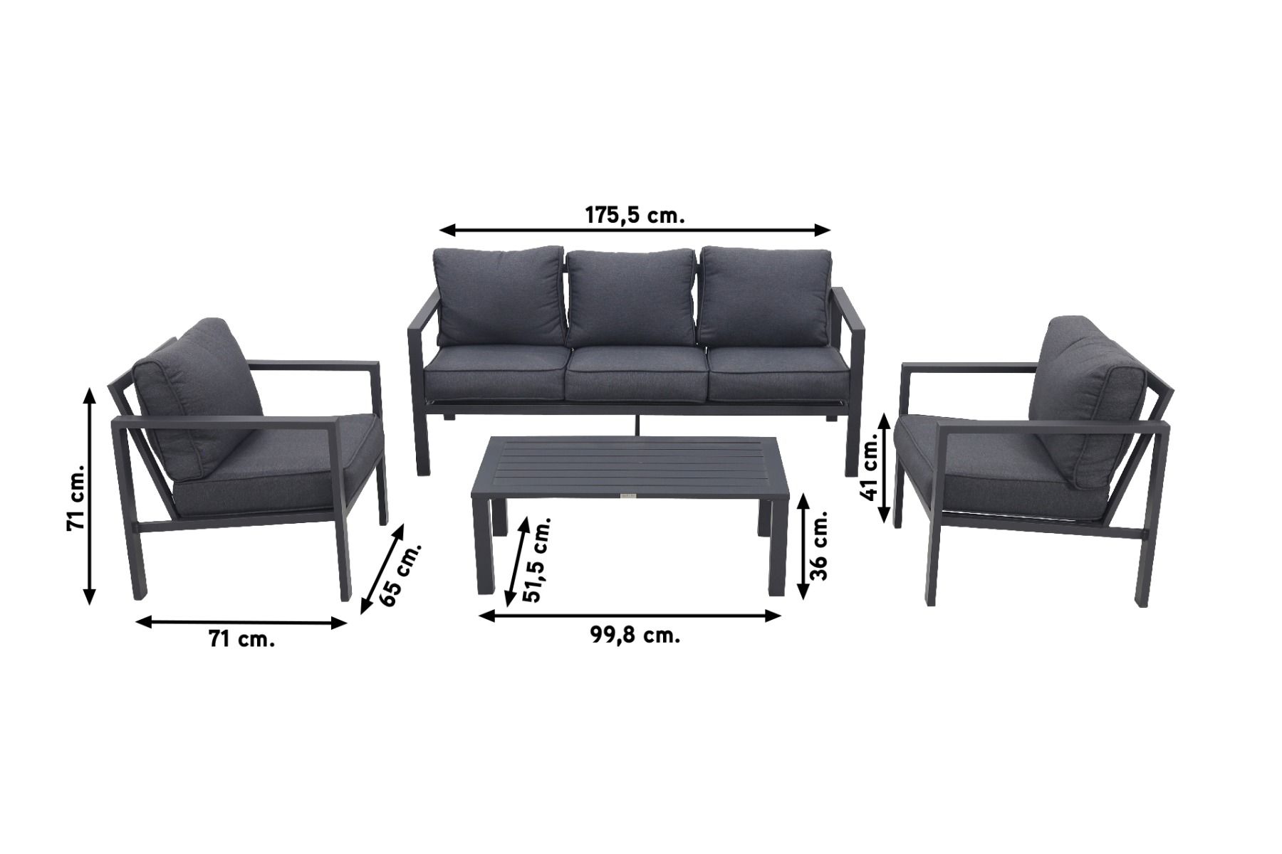 GI Springs stoel-bank loungeset (4-delig) - Antraciet OP=OP