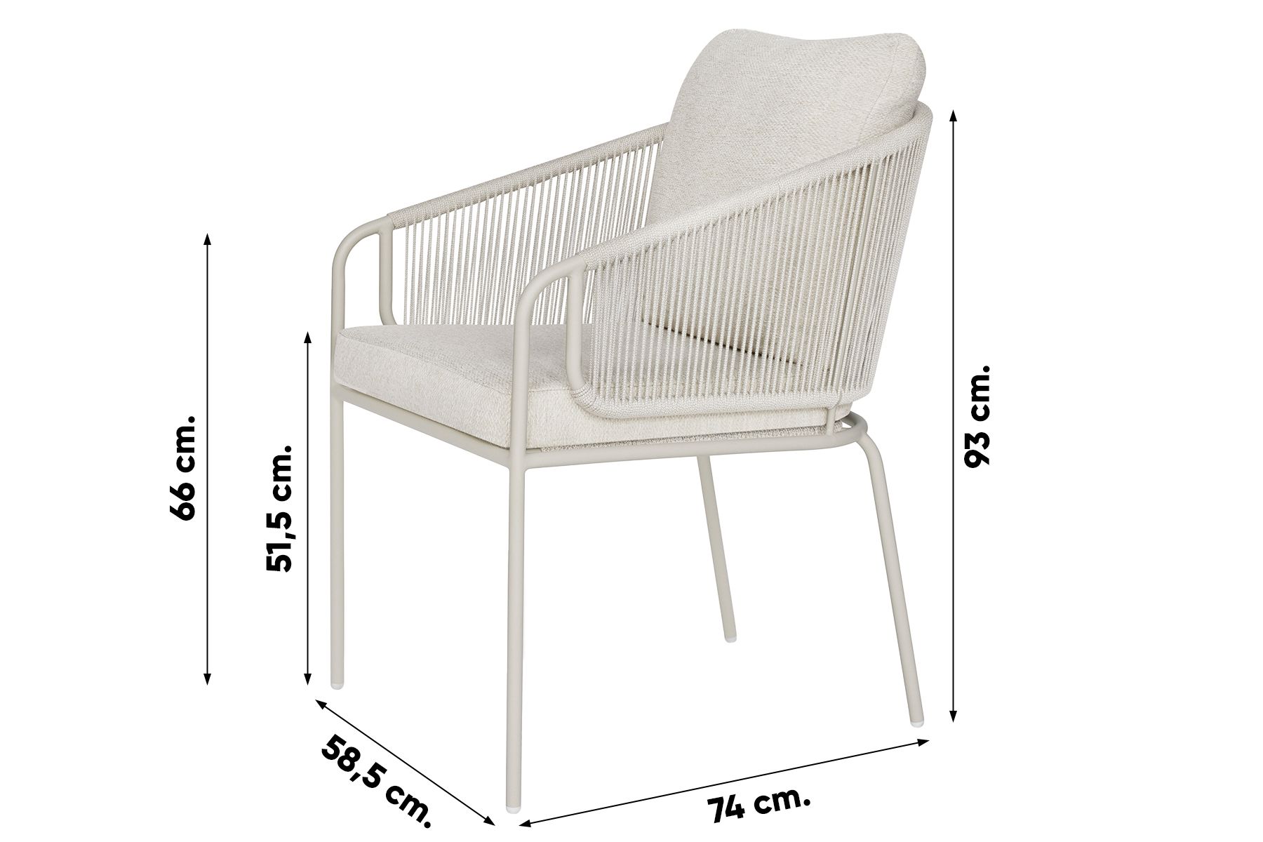 Rope (touw) is een prachtig zacht materiaal met een hippe uitstraling en weerbestendige eigenschappen. Het materiaal vergt weinig onderhoud, mocht je het rope schoon willen maken dan adviseren wij om de Wicker en textileen cleaner van 4-Seasons te gebruiken.