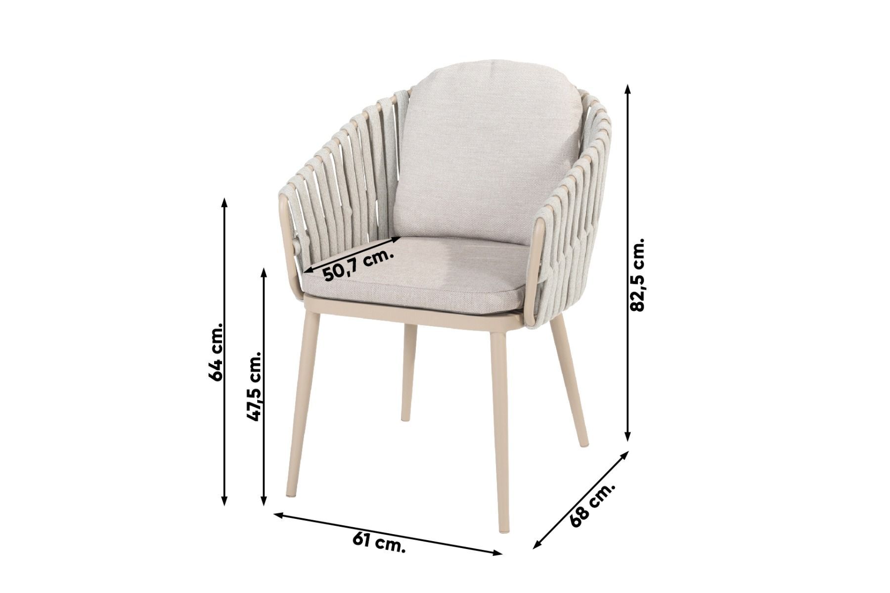 Rope (touw) is een prachtig zacht materiaal met een hippe uitstraling en weerbestendige eigenschappen. Het materiaal vergt weinig onderhoud, mocht je het rope schoon willen maken dan adviseren wij om de Wicker en textileen cleaner van 4-Seasons te gebruiken.
