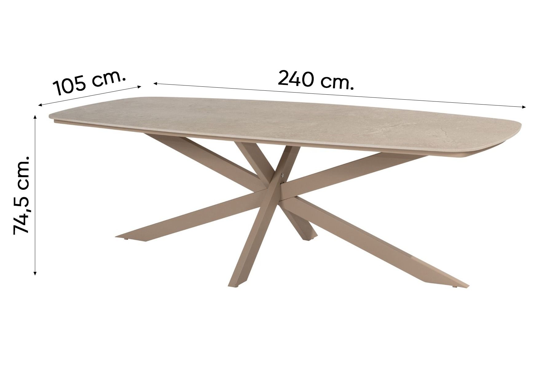 - Deens ovale keramische tuintafel van 240x105 cm met betonlook