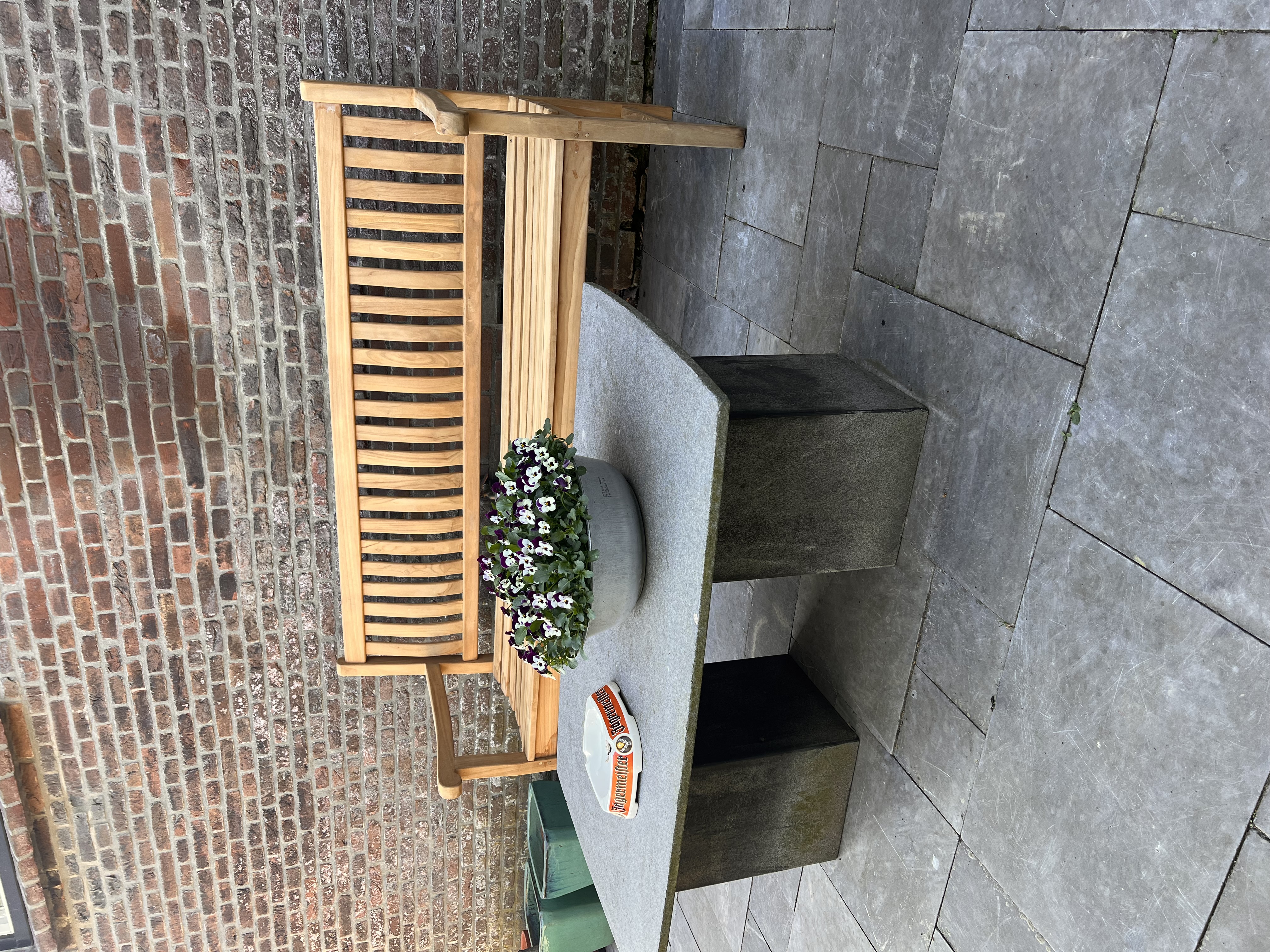 • Optie 2: De tafel goed schoon maken met een borstel en teak cleaner. Goed op laten drogen en daarna behandelen met teak shield. Na verloop van tijd zal de tafel op een natuurlijke manier vergrijzen.