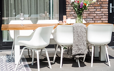Meet de beschikbare ruimte op in jouw buitenruimte. Tijdens het opmeten is het belangrijk om rekening te houden met bewegingsruimte. Bij een tuinset heb je 75 cm nodig om de stoel naar achter te kunnen schuiven zodra je de tuintafel verlaat. Het is ook van belang om rekening te houden met de breedte van de tafel en nog een keer die 75 cm aan de andere kant. Zo heb je de benodigde ruimte juist berekend. Wil je extra bewegingsruimte achter de tafel? Dan kun je er nog minimaal 60 tot 80 cm bij optellen.