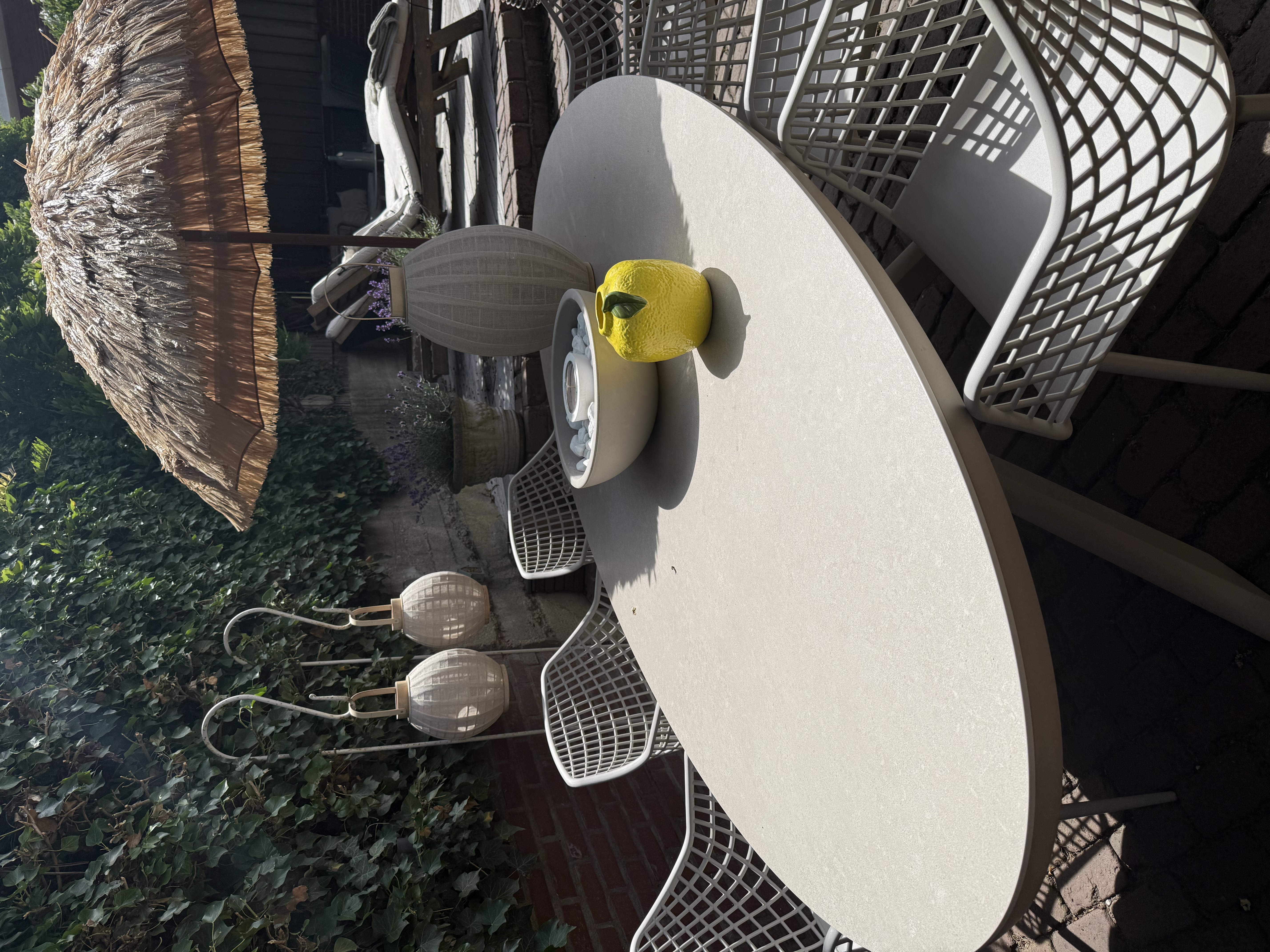 Goed advies, goede levering! De kleur van de tafel is prachtig en zo fijn dat deze altijd buiten kan staan. Doekje erover en weer klaar voor gebruik. Te combineren met de meeste tuinstoelen.