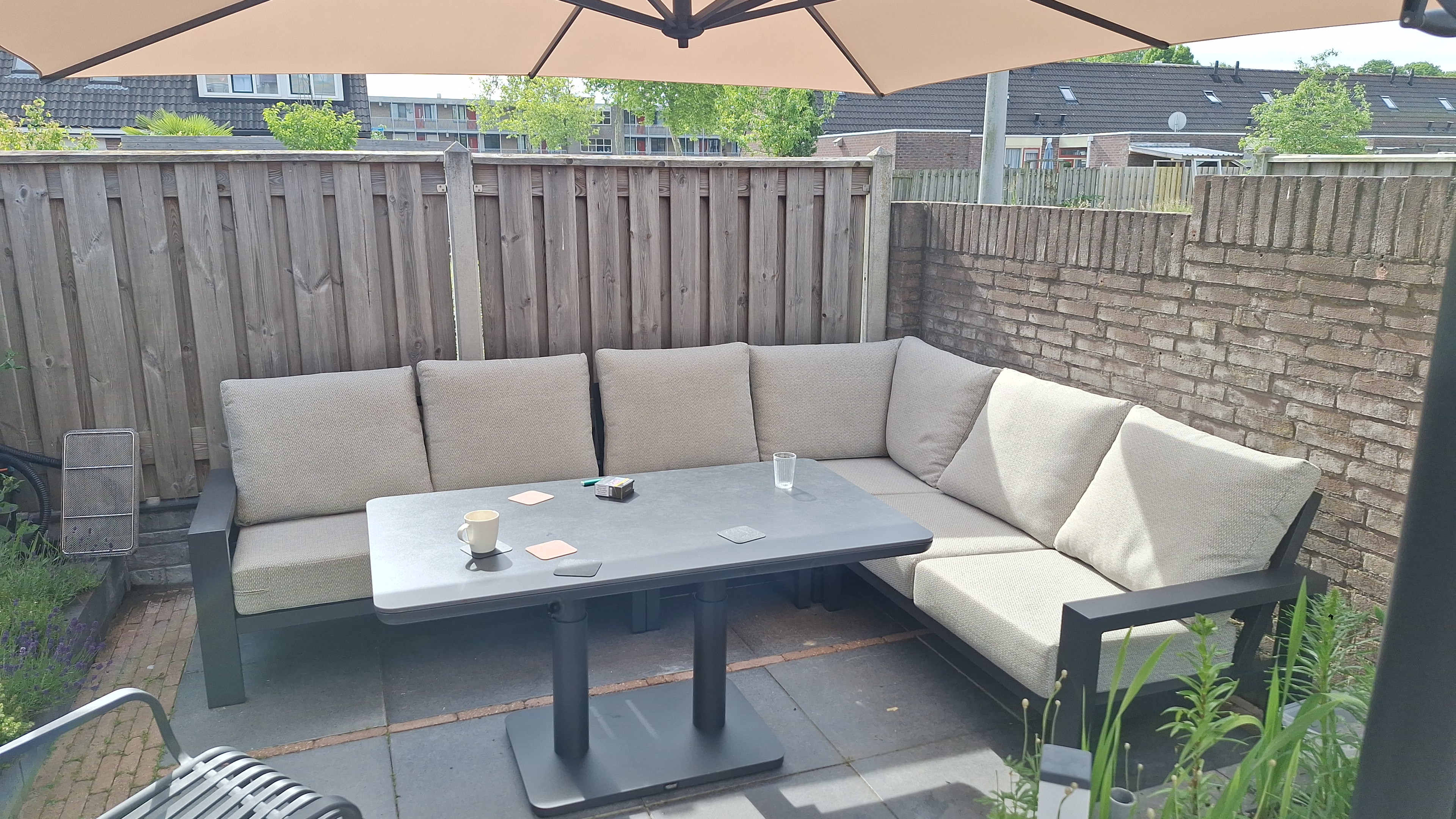 Zomerse dagen vragen om een plek waar je wilt blijven zitten en dat is precies wat deze complete Verano loungeset in Royal Grey biedt. De royale hoekbank nodigt uit tot lang loungen, de bijpassende loungestoel geeft je net dat beetje extra vrijheid en de ruime Atlanta loungetafel maakt elk buitenmoment compleet. De stijlvolle grijstint, het luchtige design en de duurzame materialen zorgen voor een rustige, luxe uitstraling in je tuin. Kom zelf de sfeer proeven in onze showroom of bestel eenvoudig online.